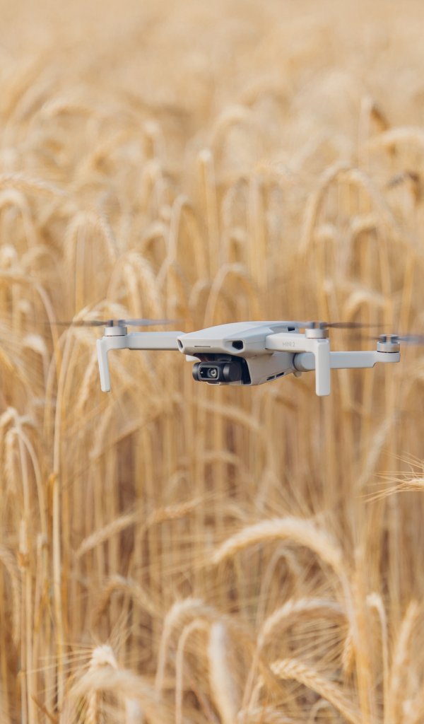 Обои: дрон летит над полем - 600x1024