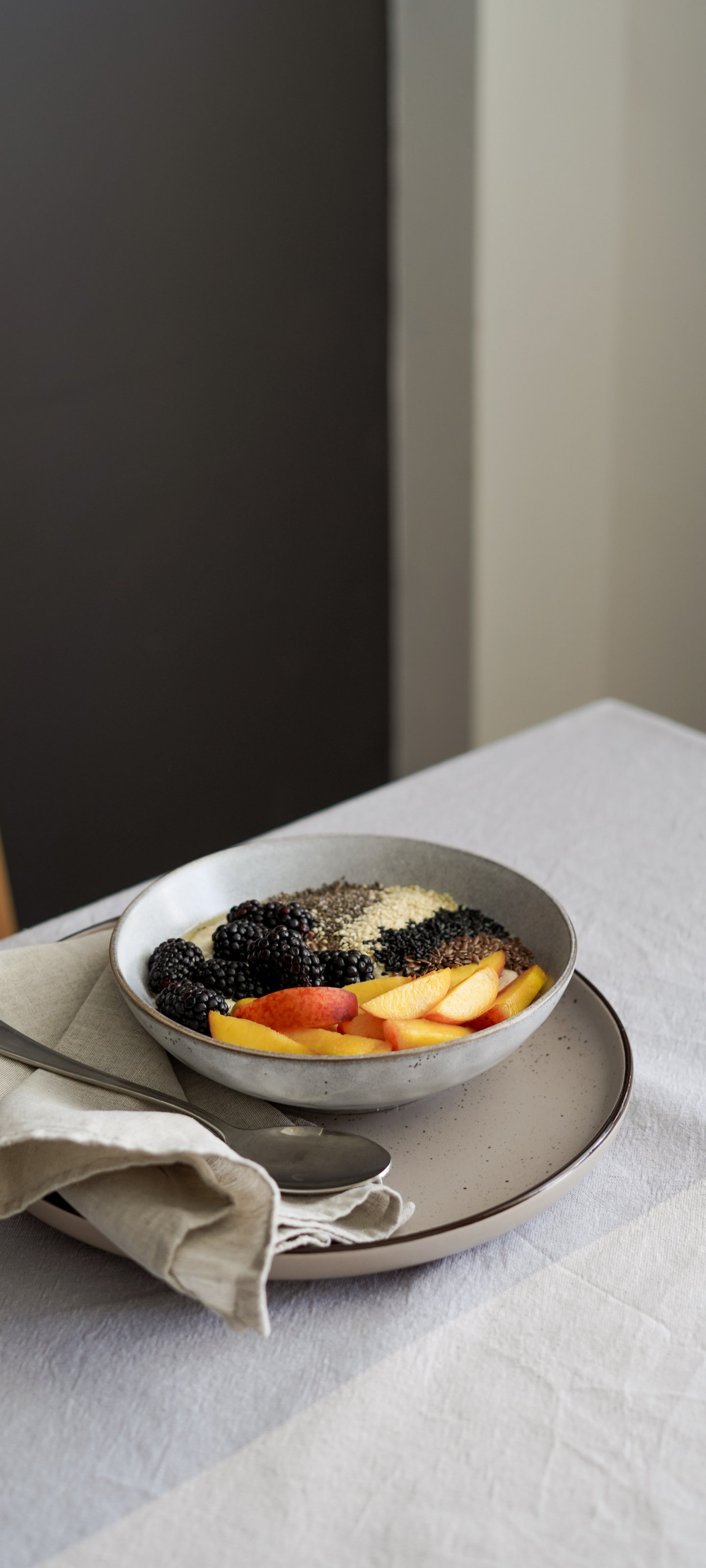 Обои: завтрак, каша с фруктами - 1440x3200