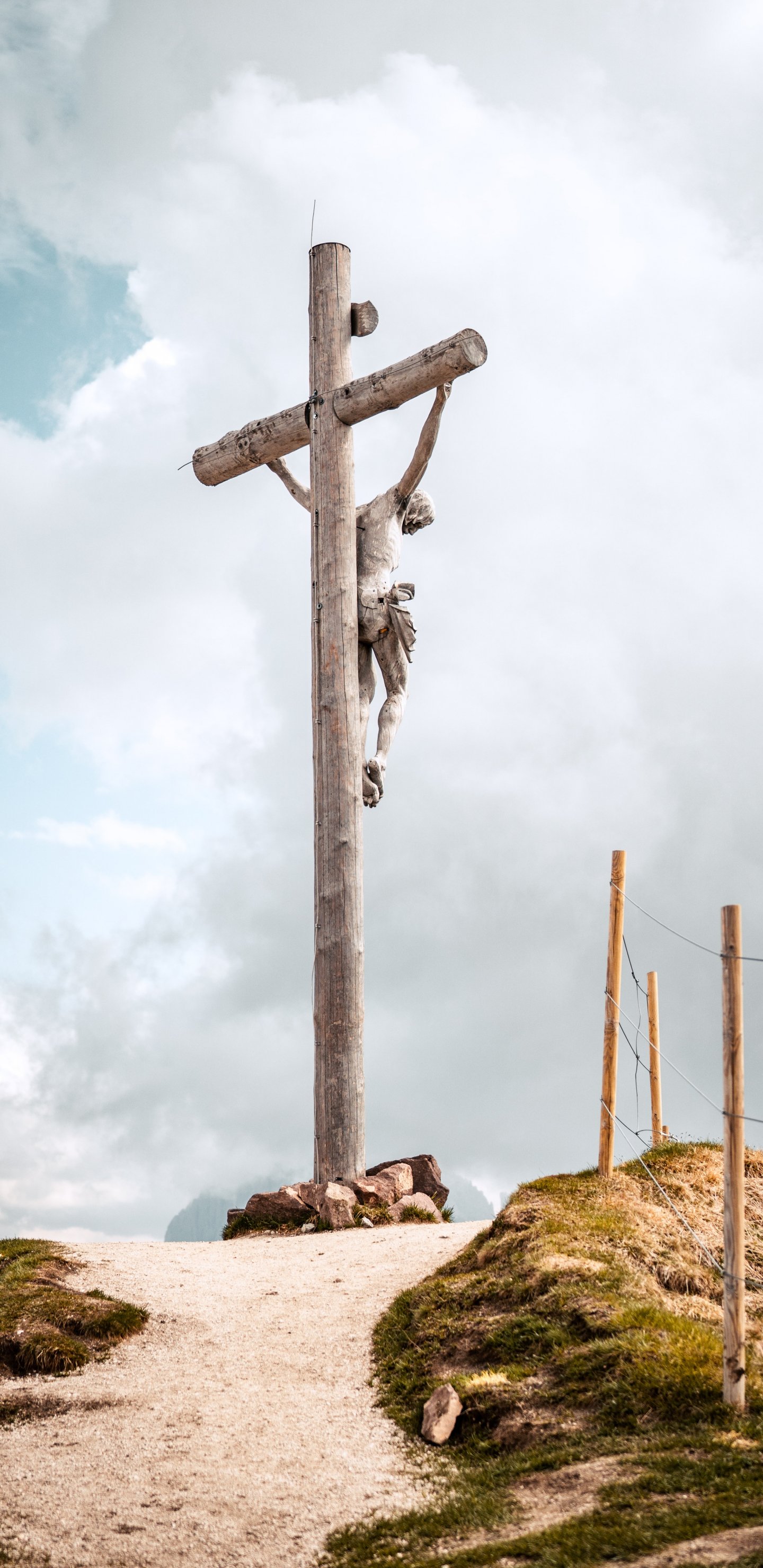 Обои: Доломитовые Альпы, статуя - 1440x2960