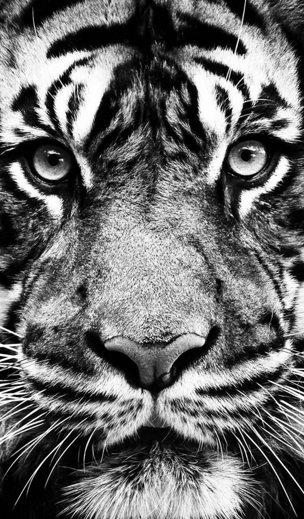 Обои: тигр, черное и белое, хищник - 600x1024