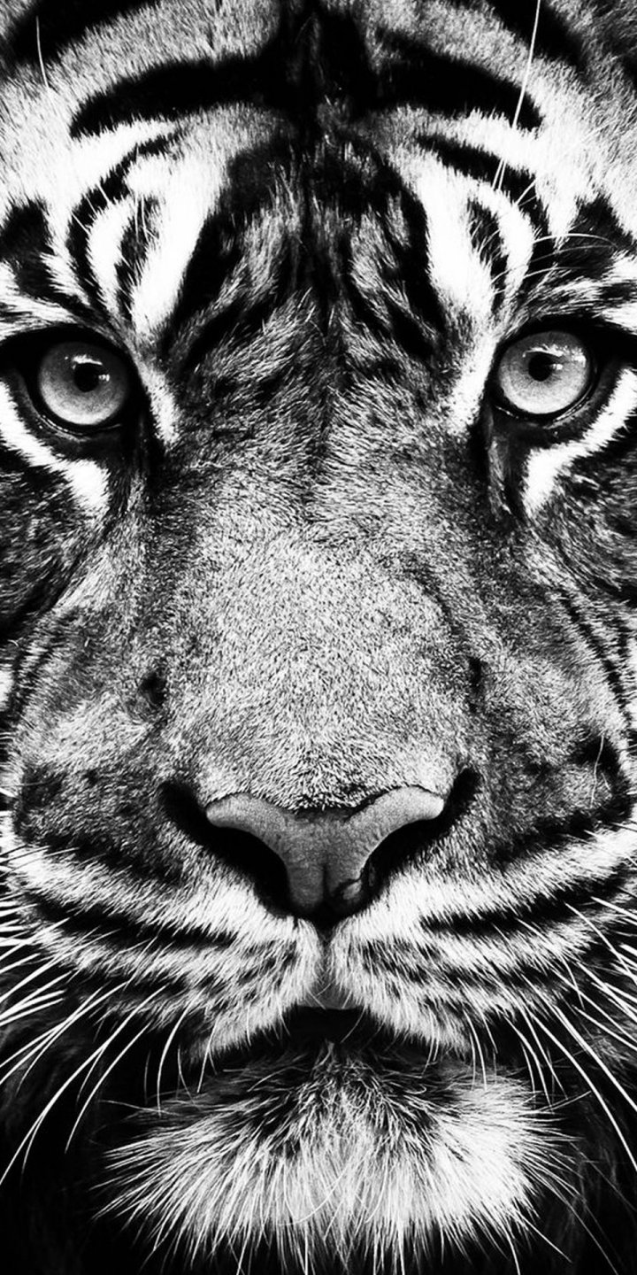 Обои: тигр, черное и белое, хищник - 720x1440