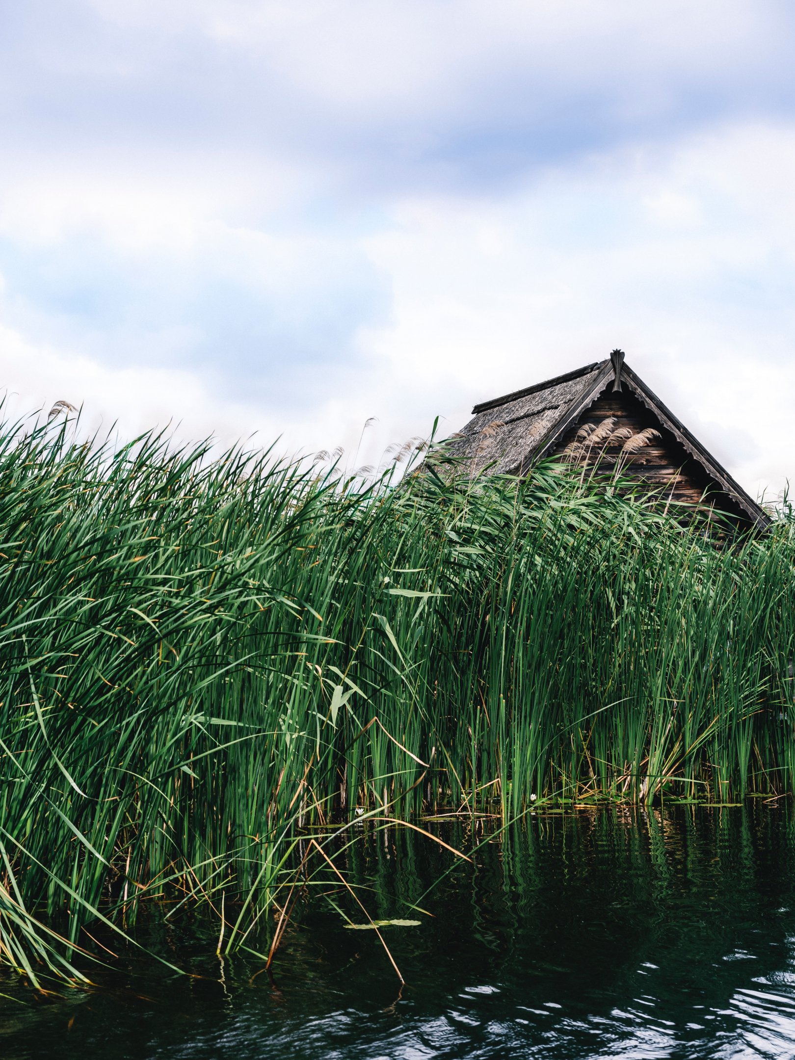 Обои: домик в камышах - 1620x2160