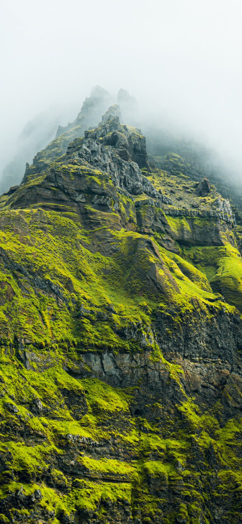 Обои: горная вершина, зеленая гора - 828x1792