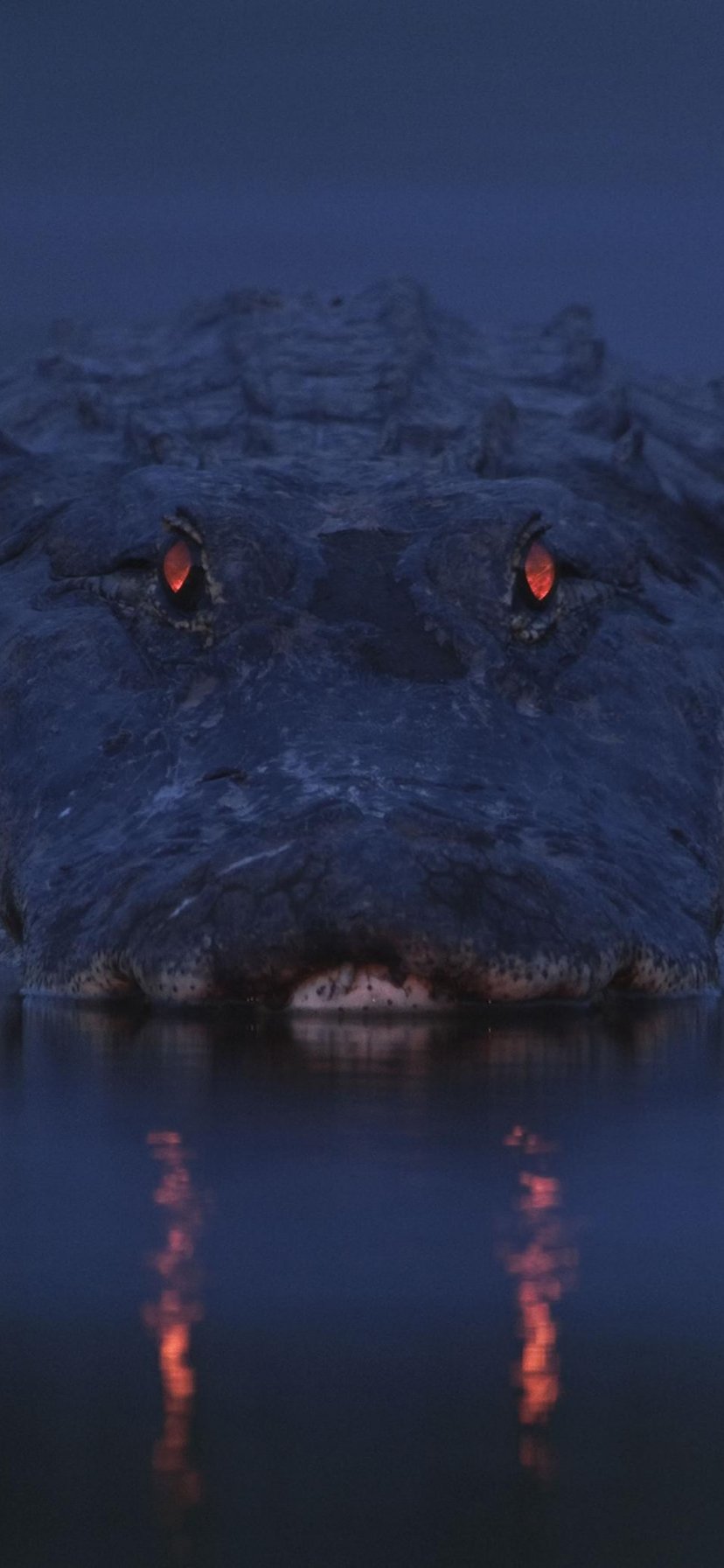 Обои: аллигатор, ночь, дикая природа - 828x1792