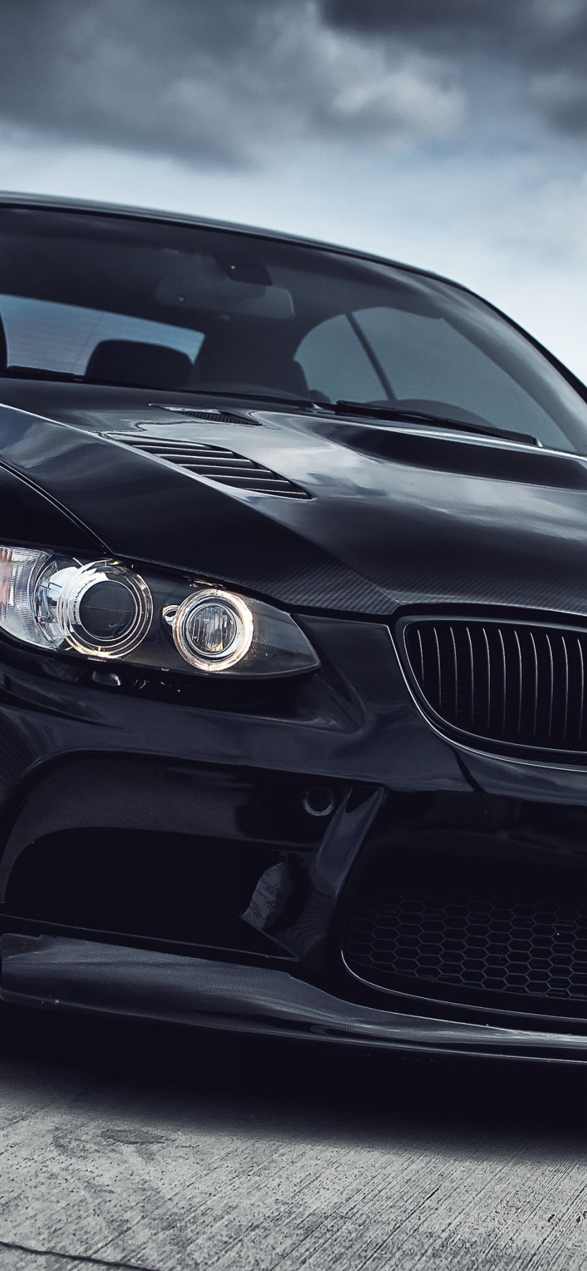 черный BMW, передняя фара, капот