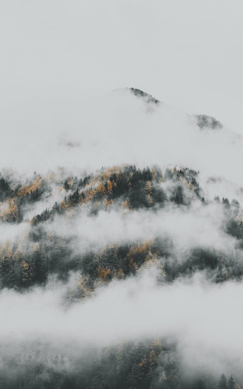 Обои: туман спустился с гор - 800x1280