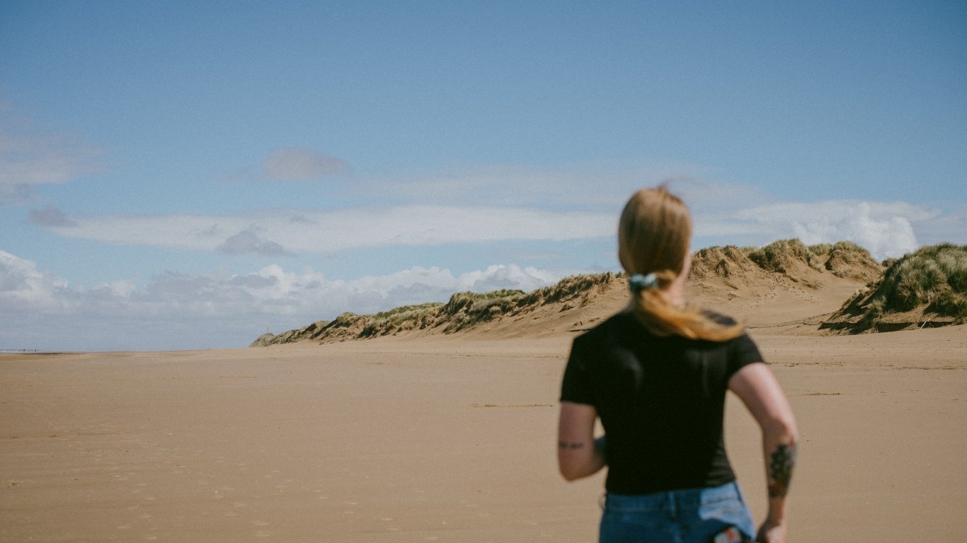 Обои: Формби, Ливерпуль, Великобритания, девушка - 1366x768