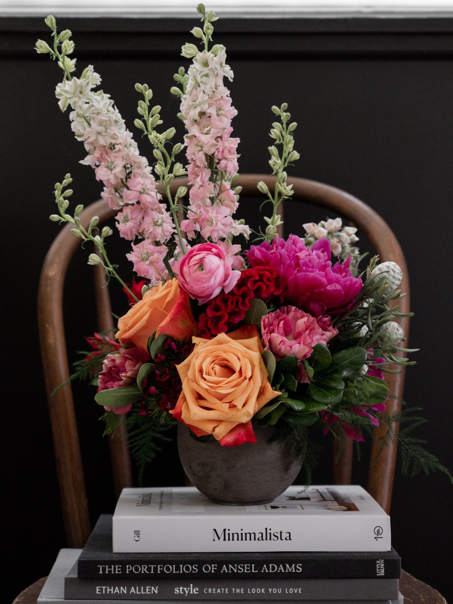 букет цветов, на черном фоне