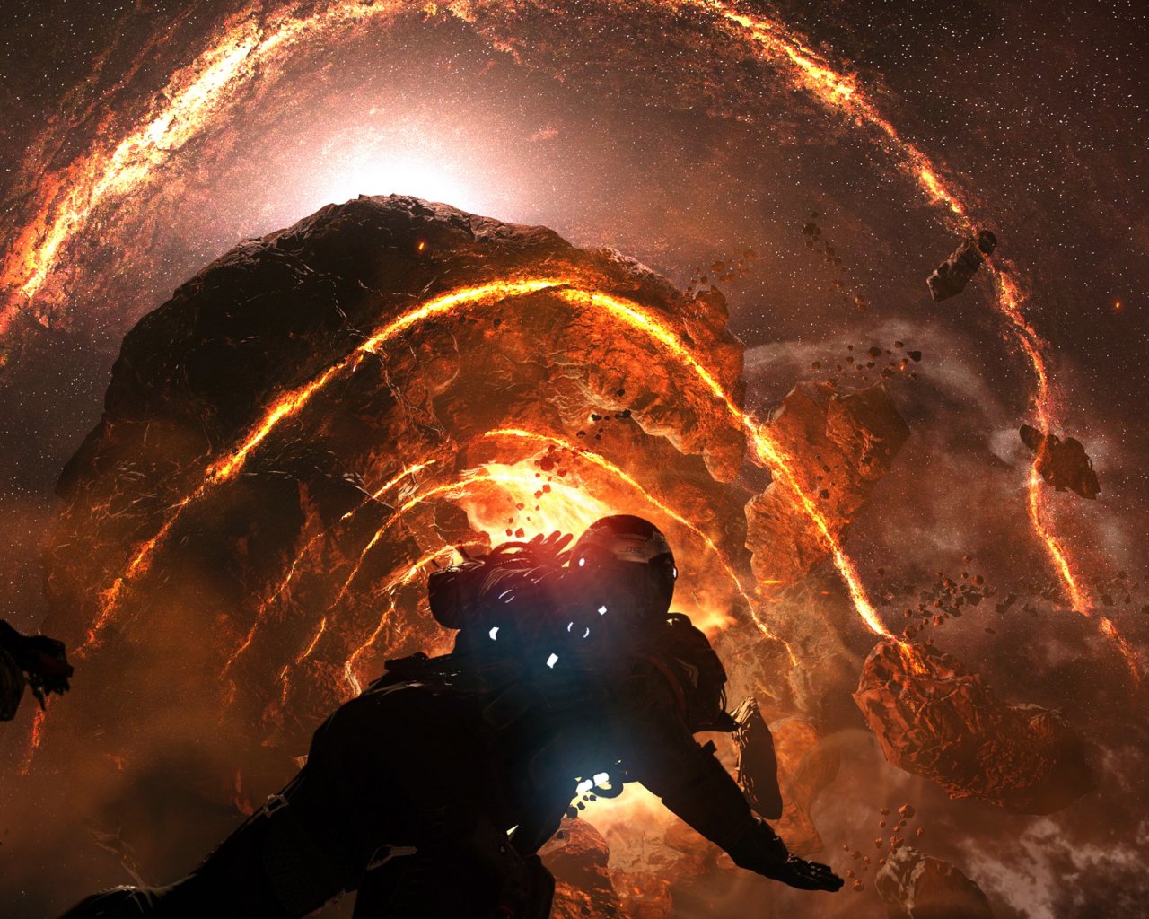 Обои: планета, астронавт, темные - 1280x1024
