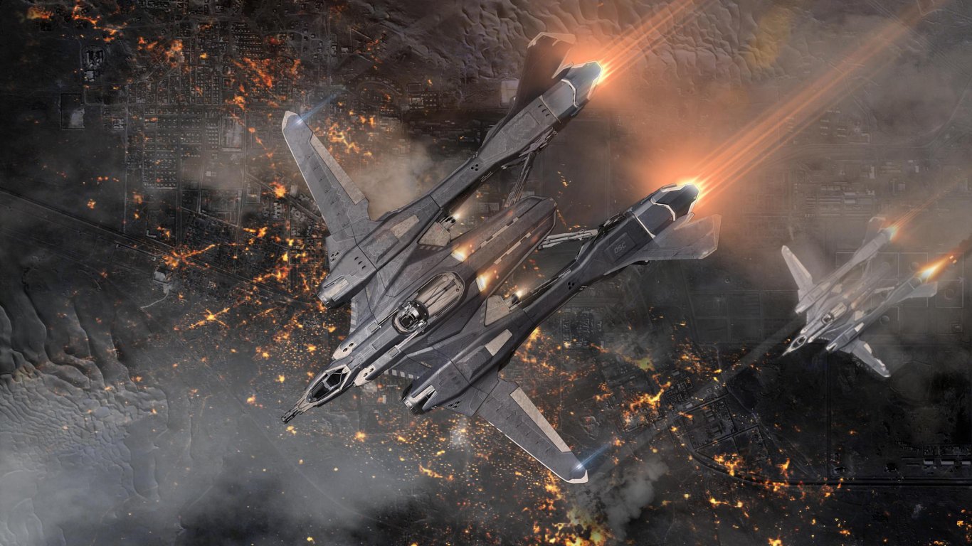 Обои: звездолет, фантастика, планета - 1366x768
