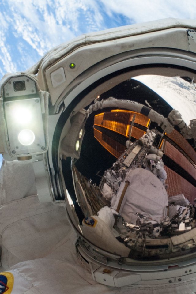 Обои: космонавт, селфи, планета Земля - 640x960