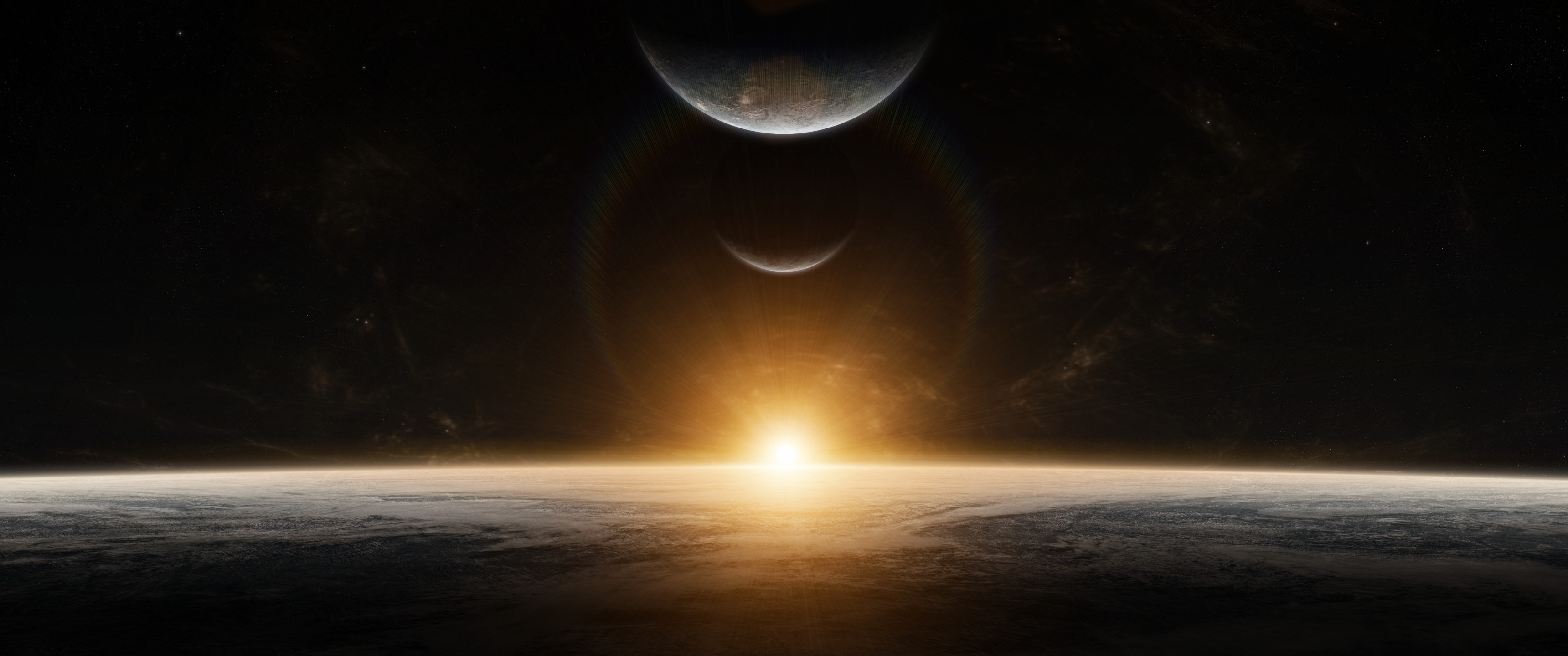 Обои: планета, солнечный свет, черный - 3440x1440