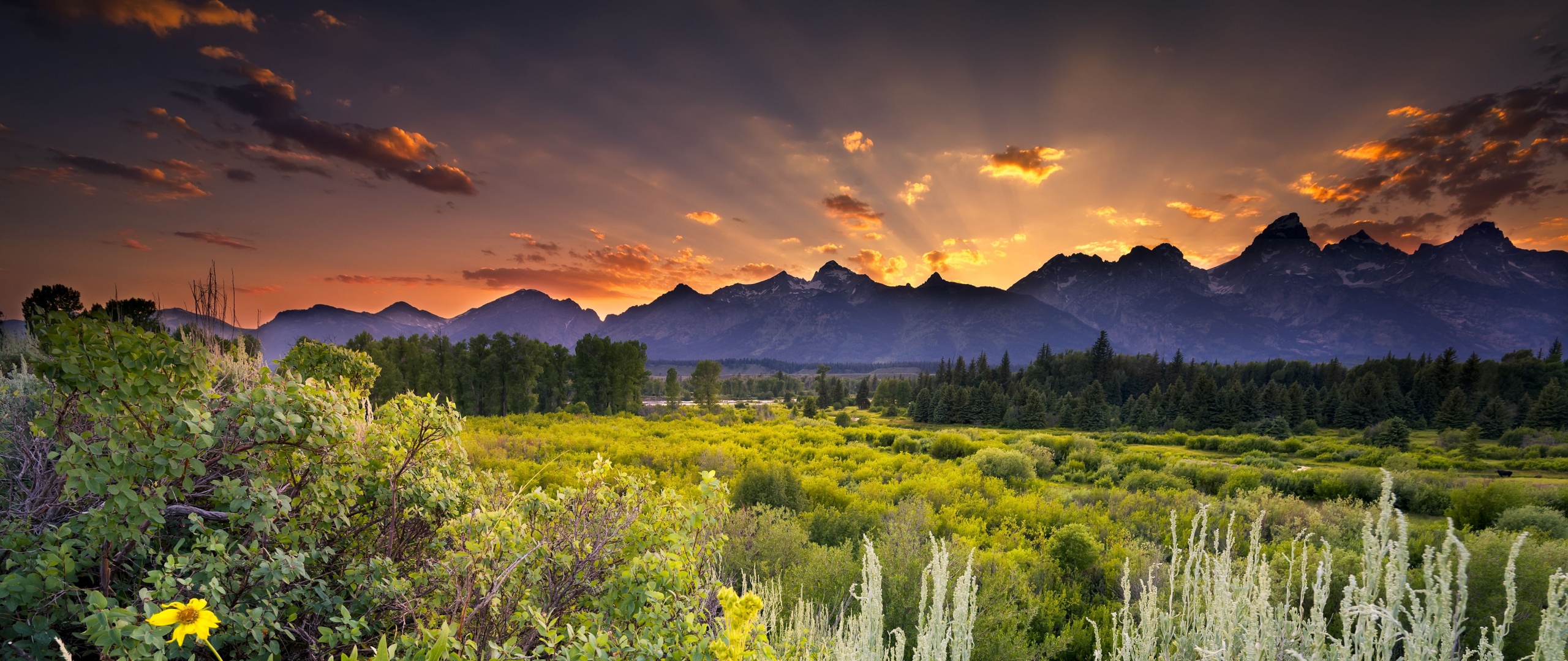 Обои: закат, горы, пейзаж - 2560x1080