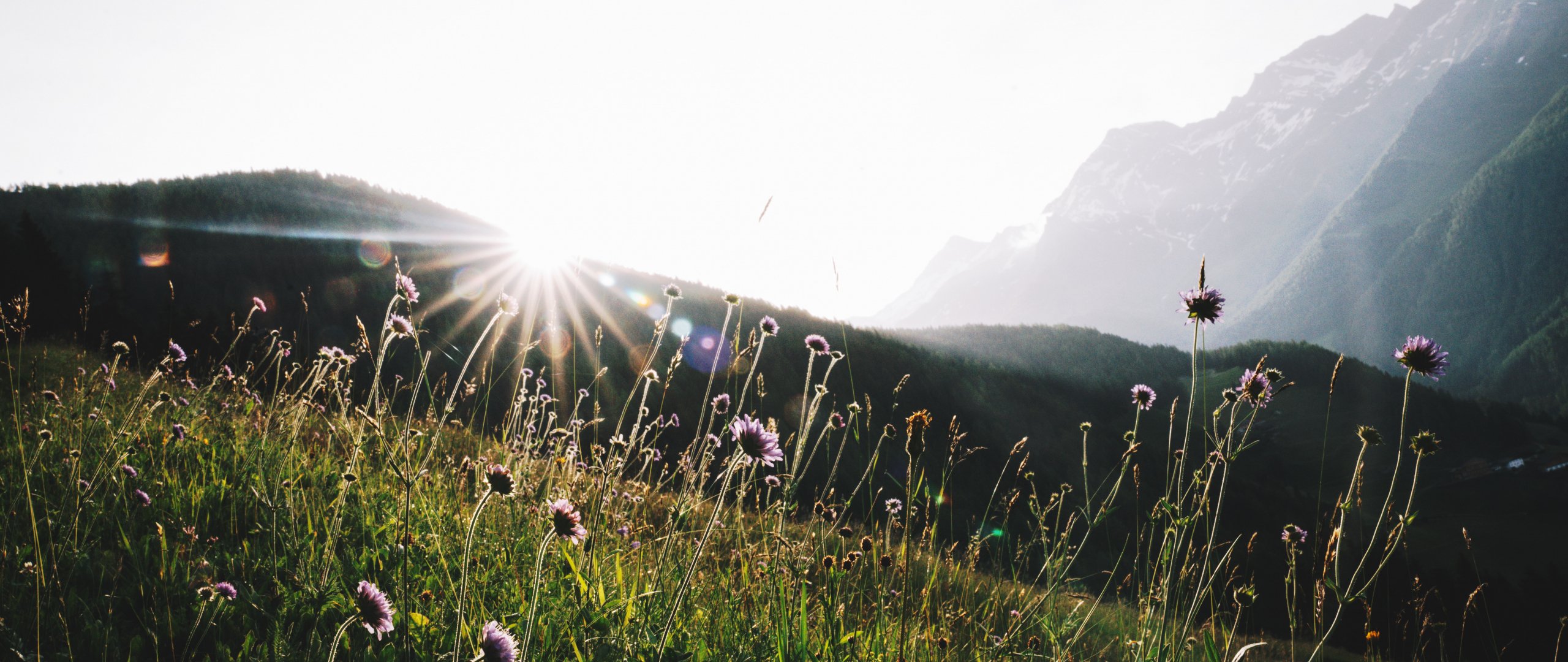 Обои: солнце, горы - 2560x1080
