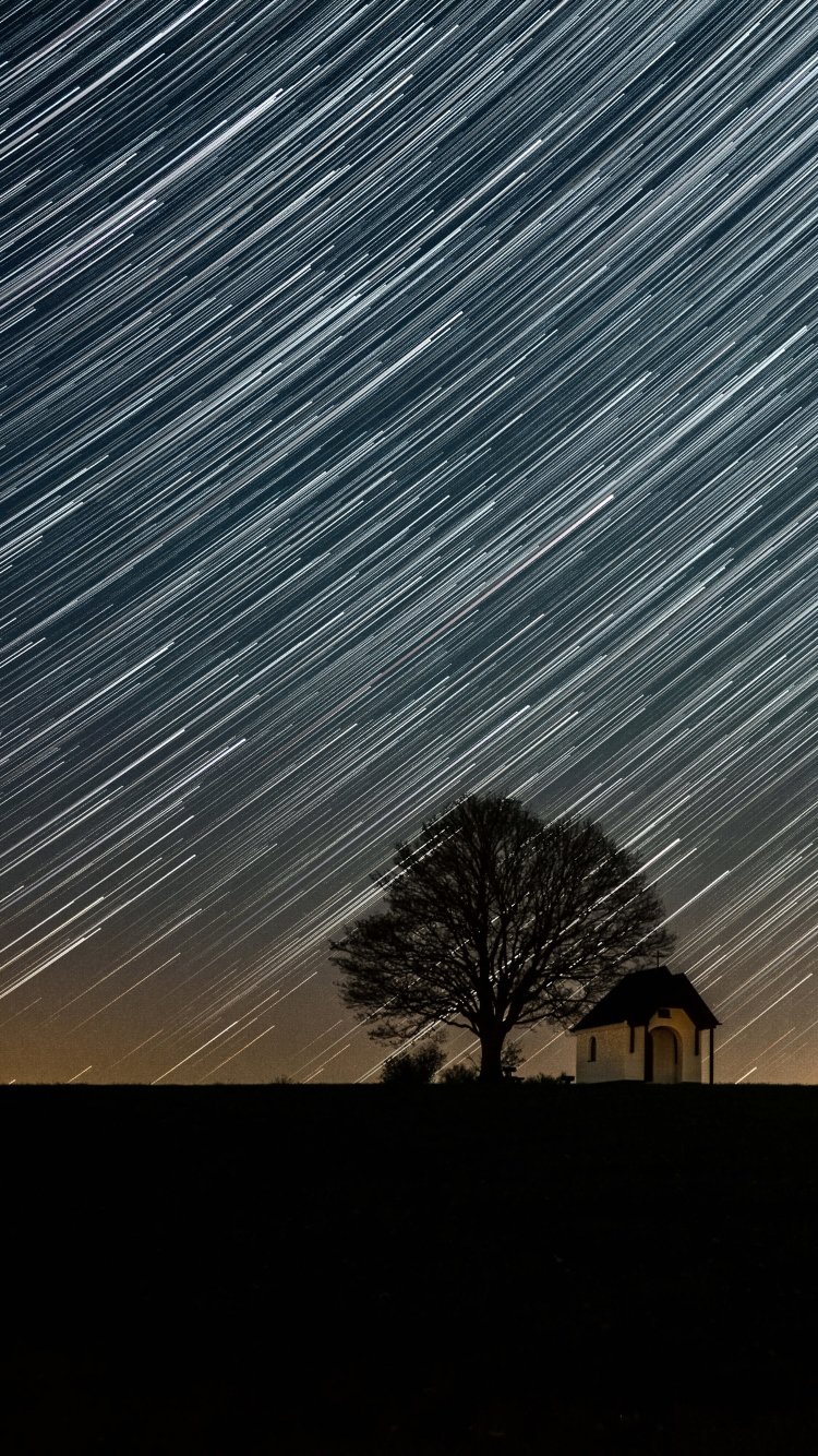 Обои: ночь, движение звезд - 750x1334