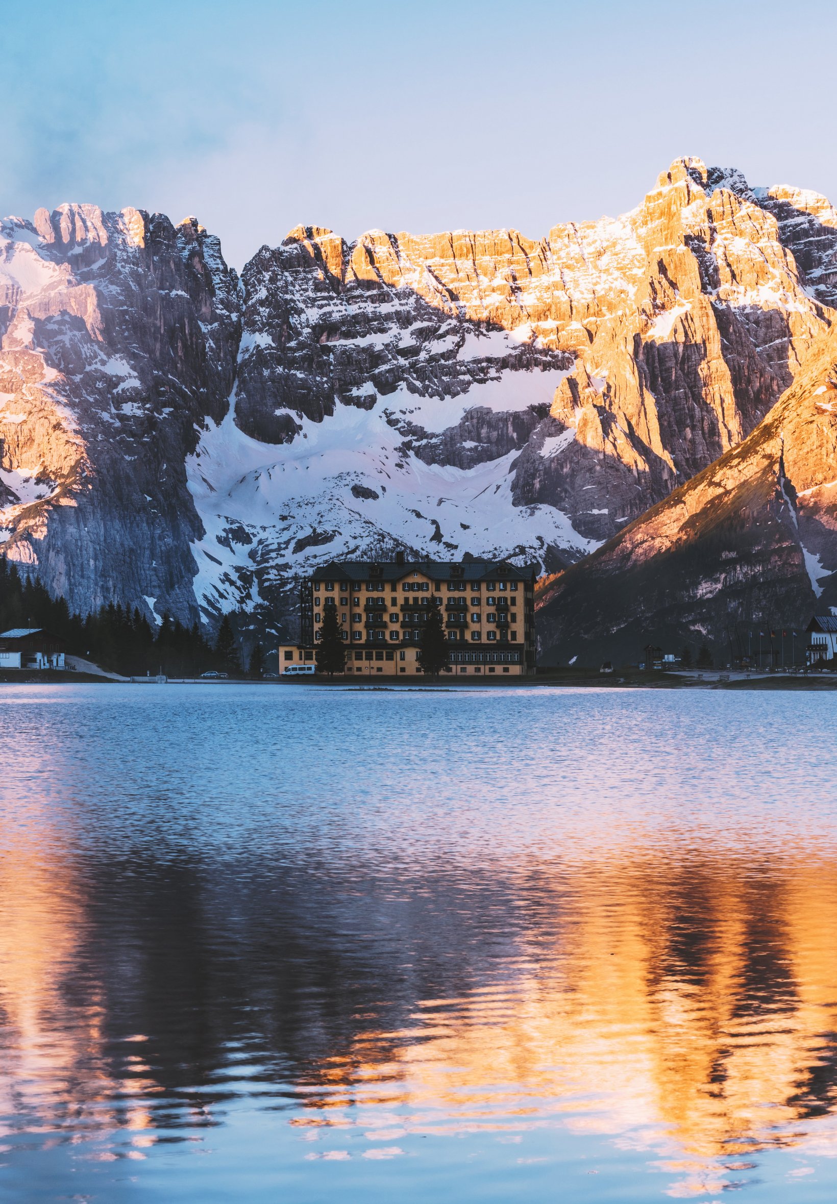 Обои: дом у озера, горный хребет - 1640x2360