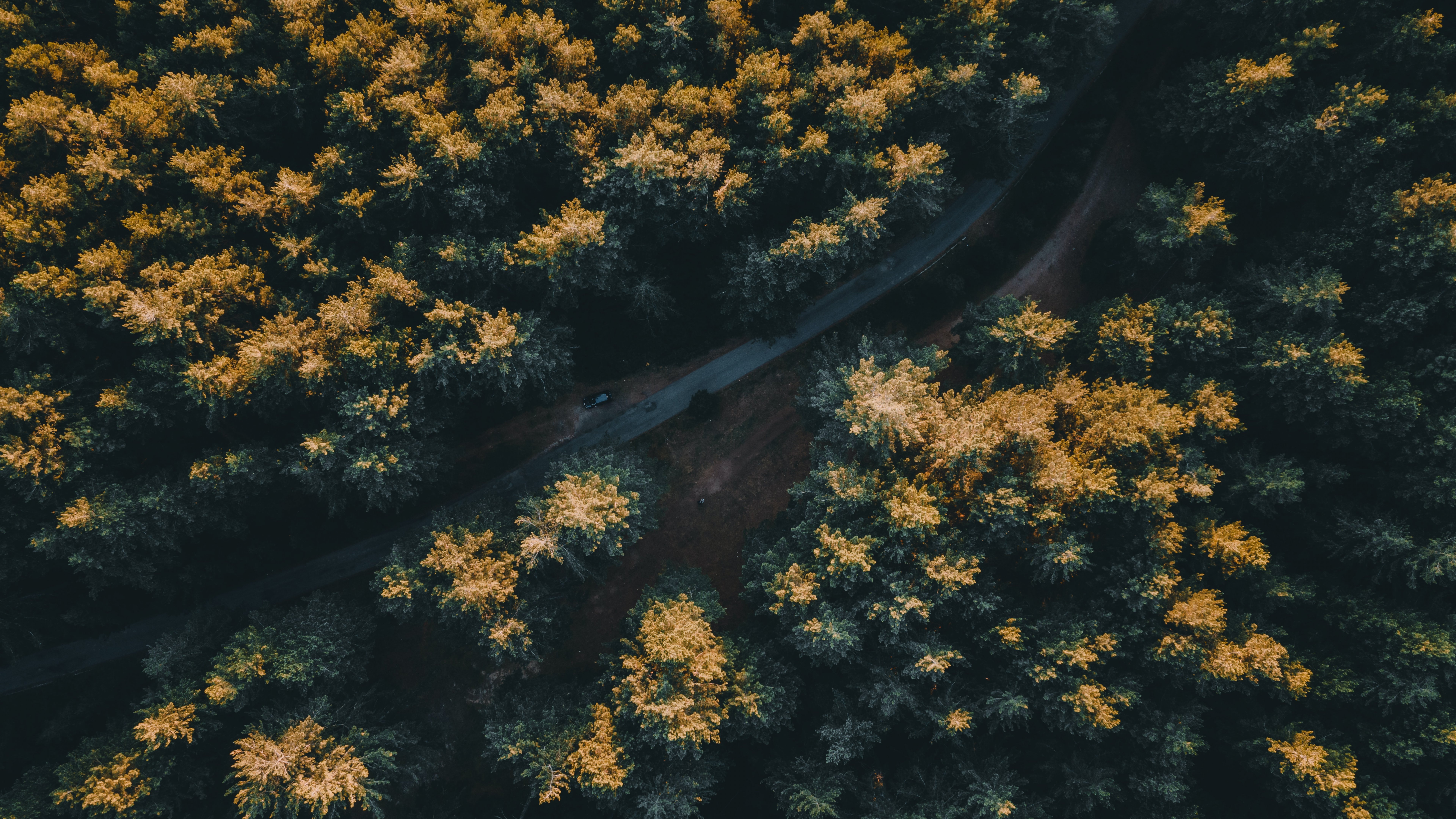 Обои: дорога в лесу - 7680x4320