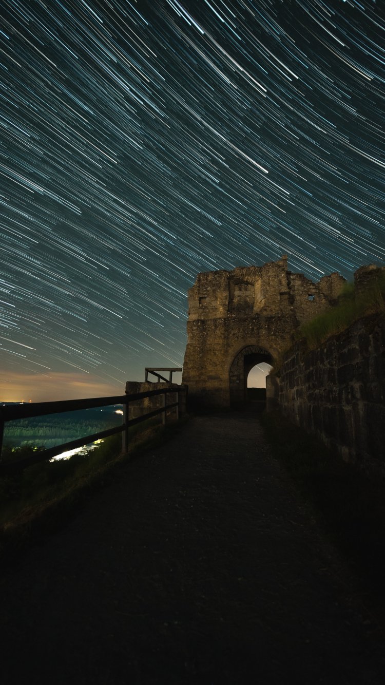 Обои: ночная крепость, звездное небо - 750x1334