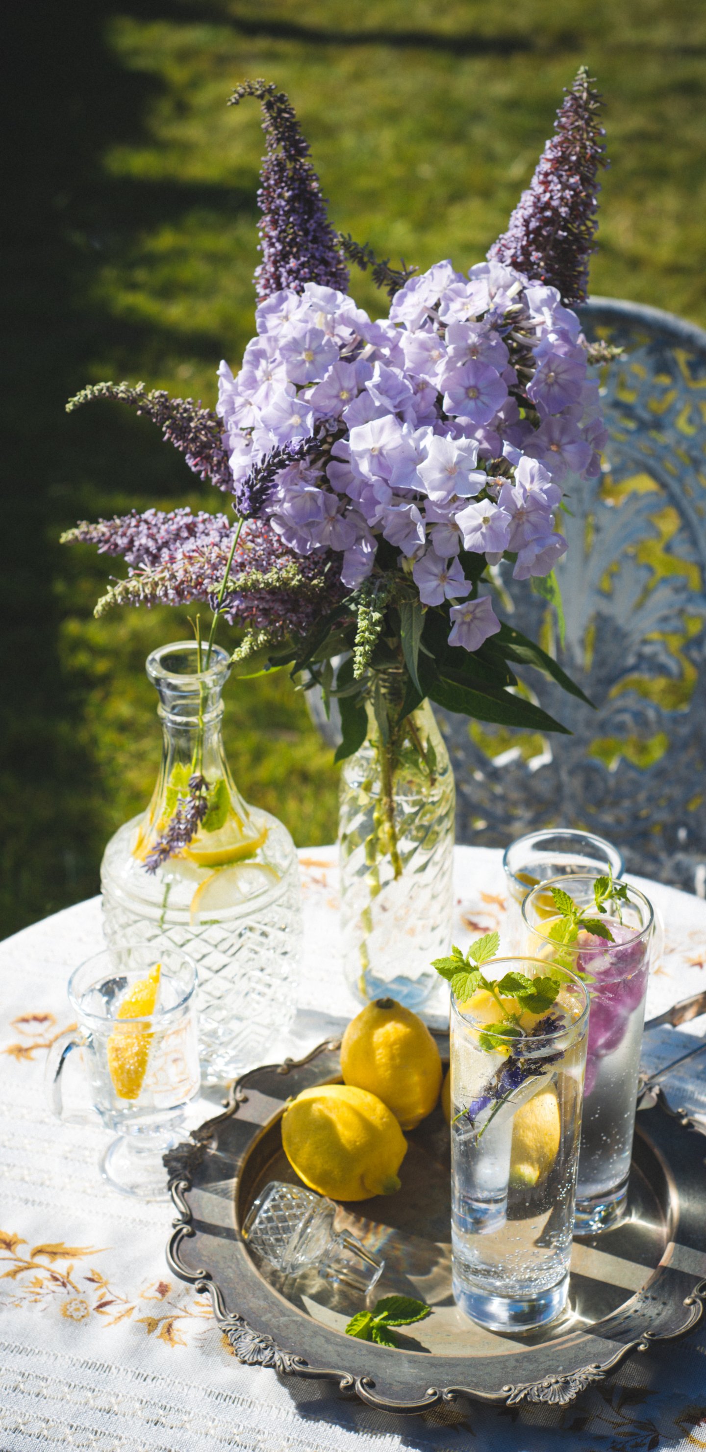 Обои: летний стол, букет - 1440x2960