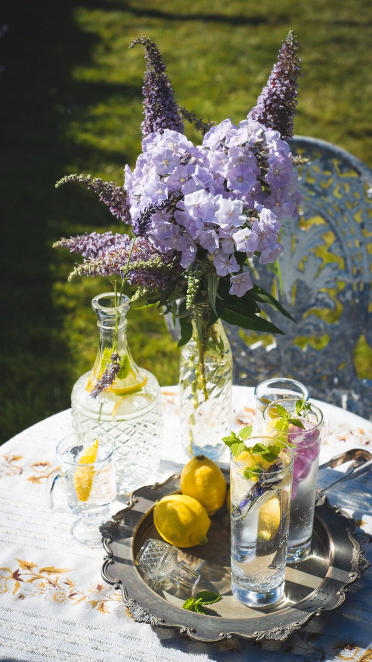 Обои: летний стол, букет - 750x1334