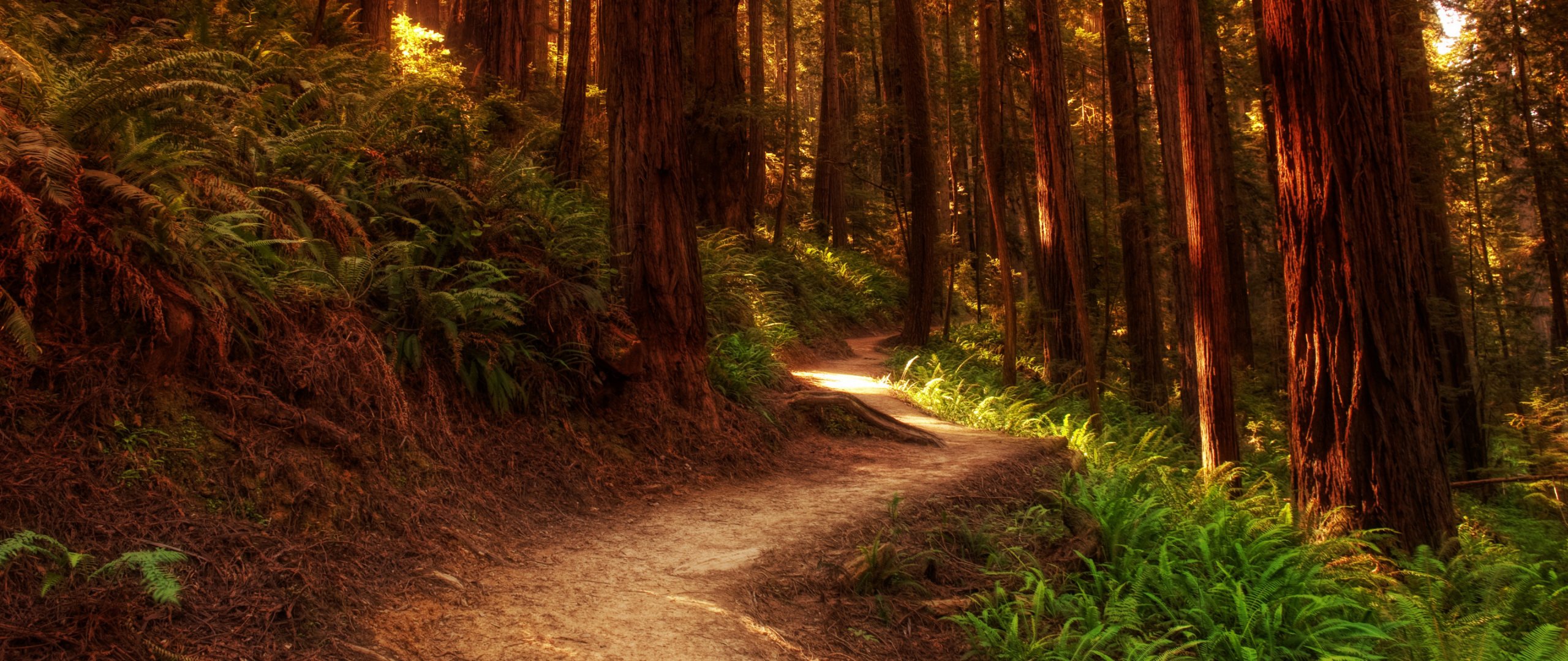 Обои: лес, тропа, деревья - 2560x1080