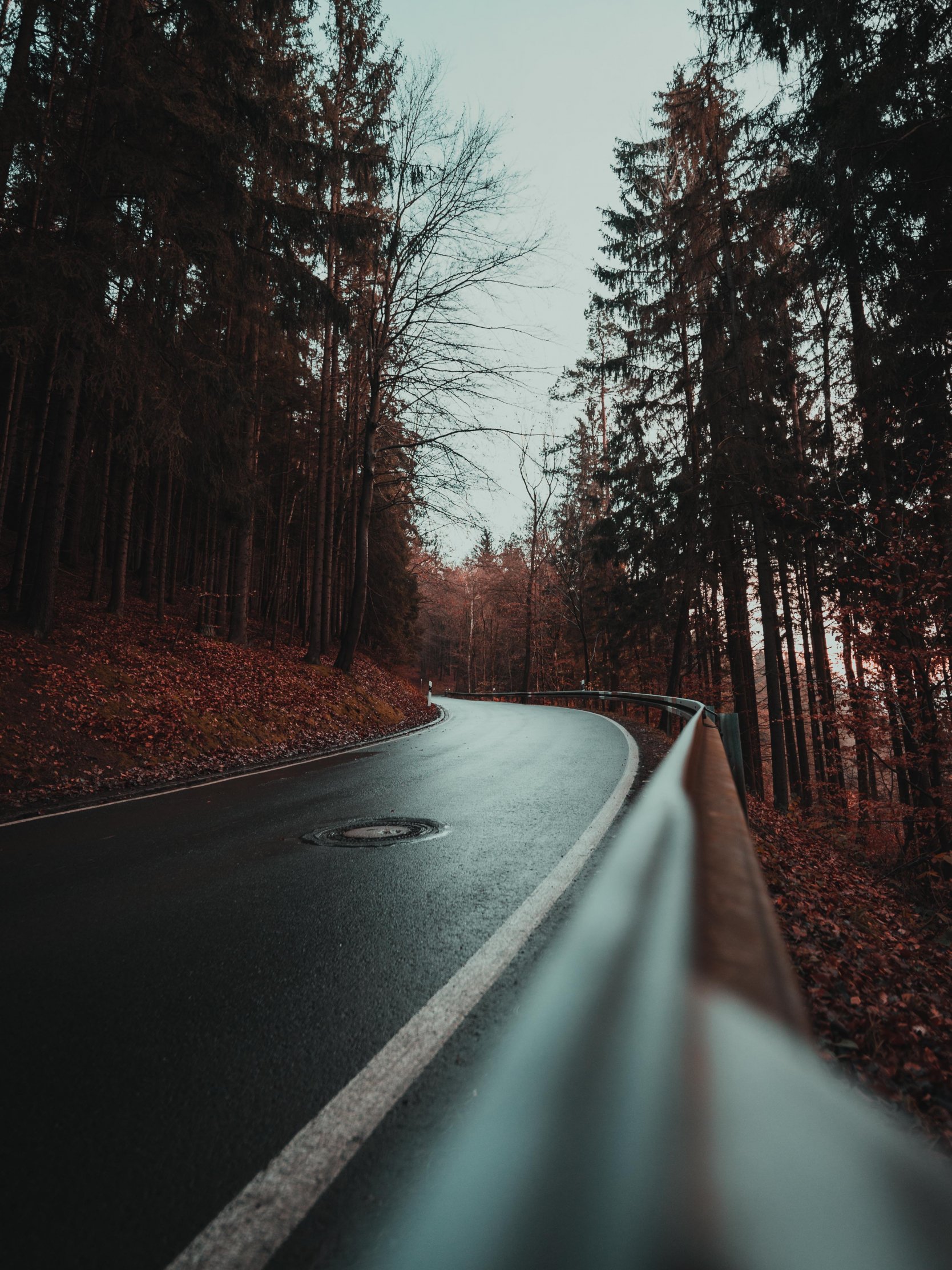 Обои: мокрая дорога, в лесу - 1668x2224