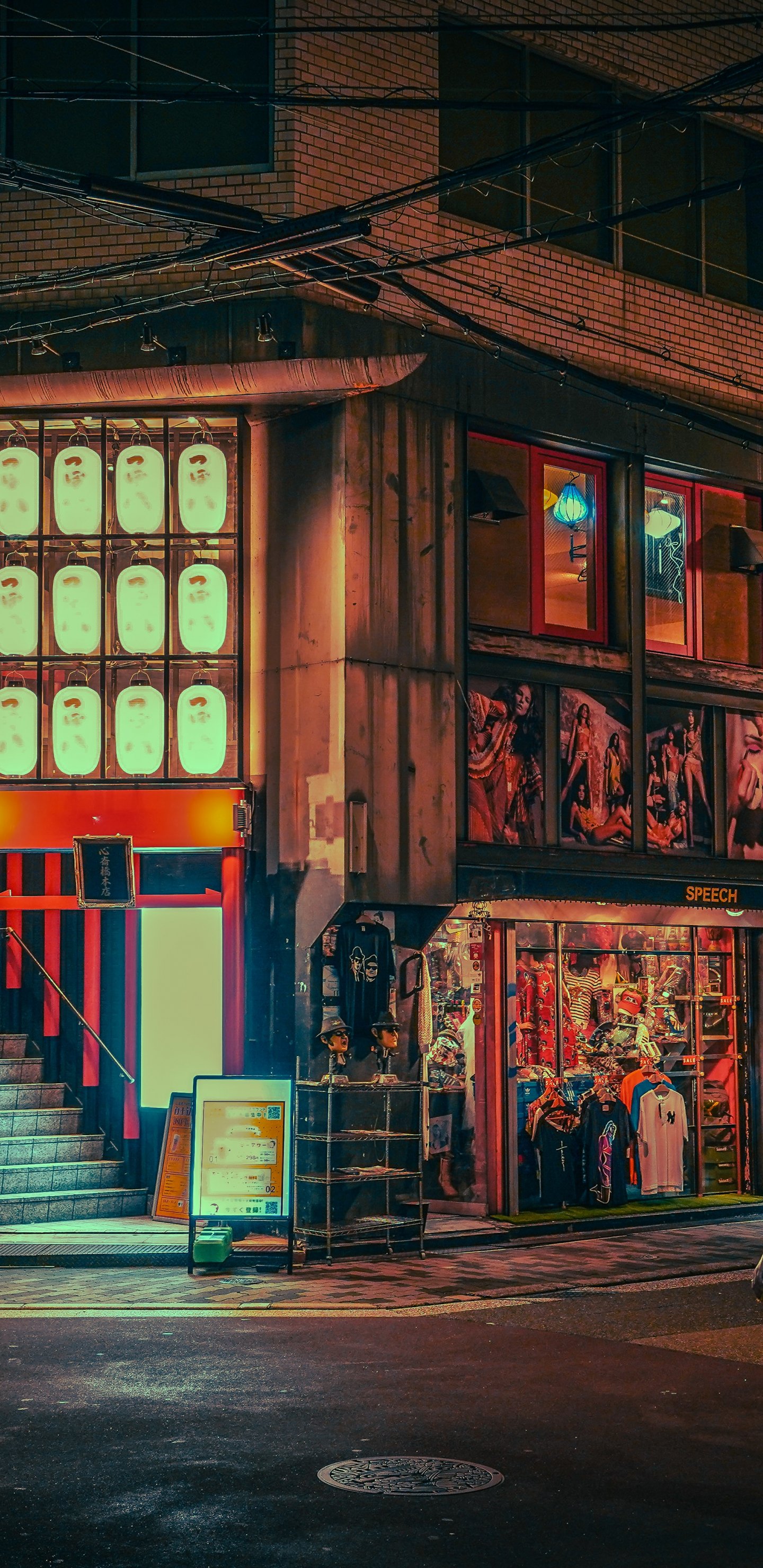 ночной город, переулок, Япония