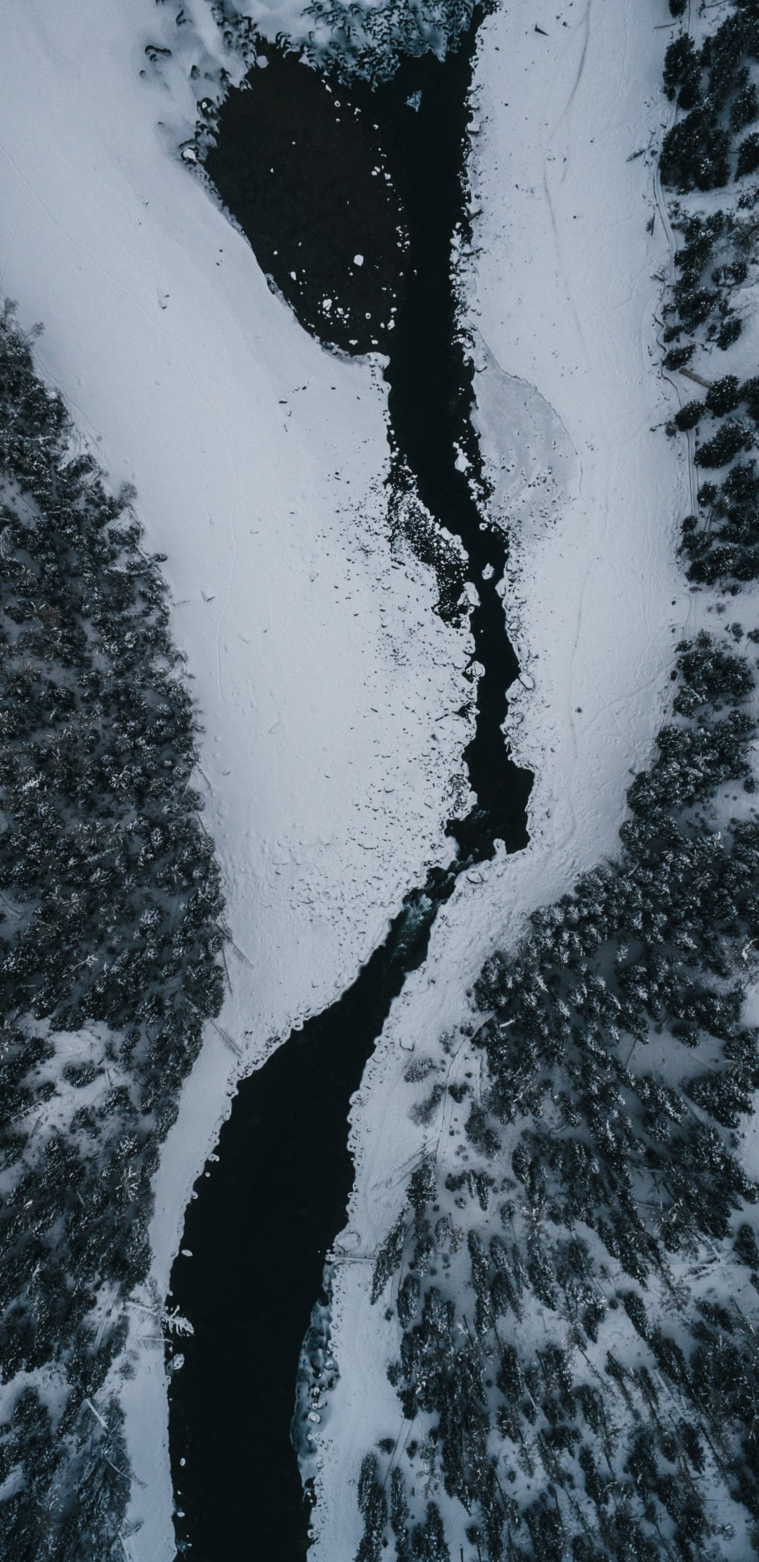 Обои: зимний пейзаж, над землей - 1080x2220