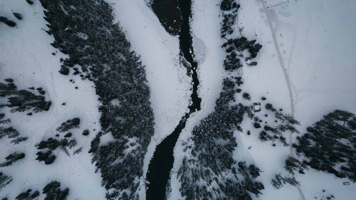 Обои: зимний пейзаж, над землей - 1366x768