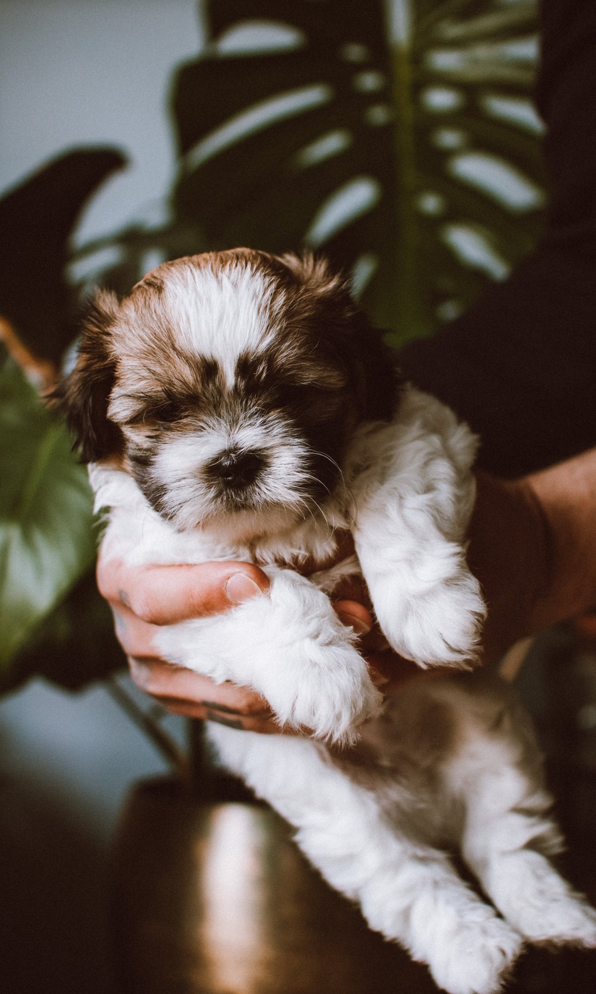 Обои: собака, щенок на руках - 1200x2000