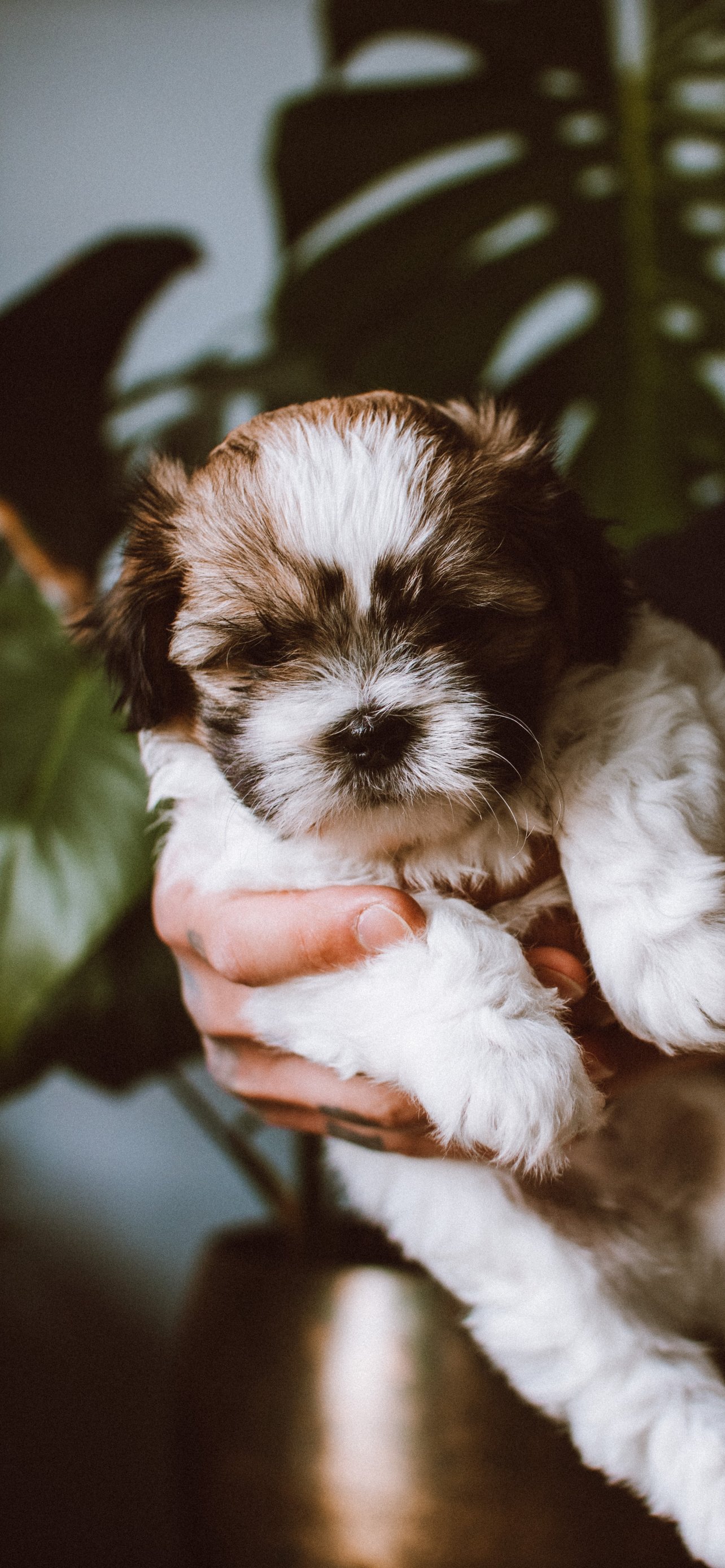 Обои: собака, щенок на руках - 1284x2778