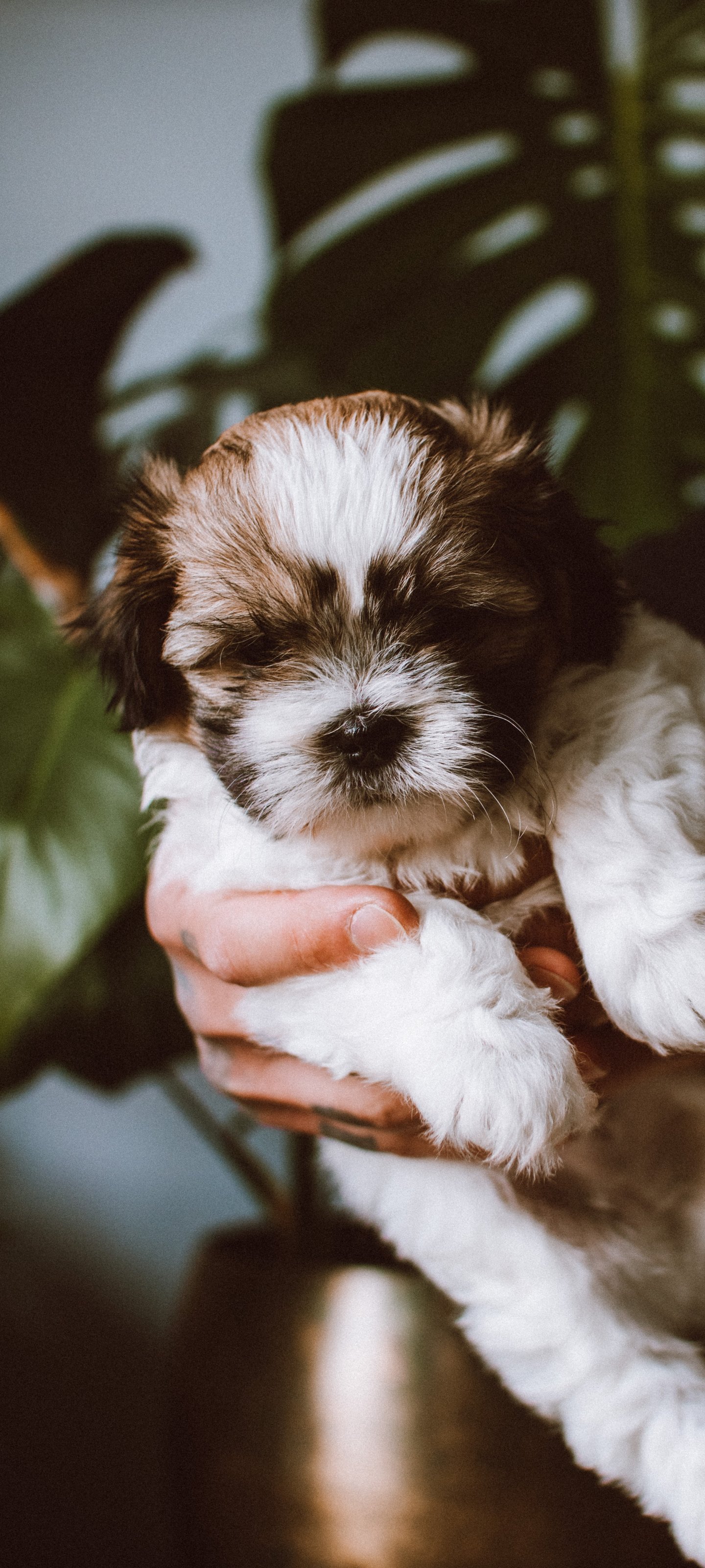 Обои: собака, щенок на руках - 1440x3200