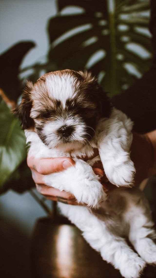 Обои: собака, щенок на руках - 640x1136