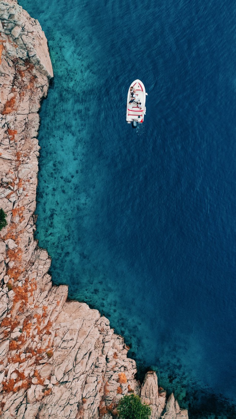 Обои: море, лодка в море - 750x1334
