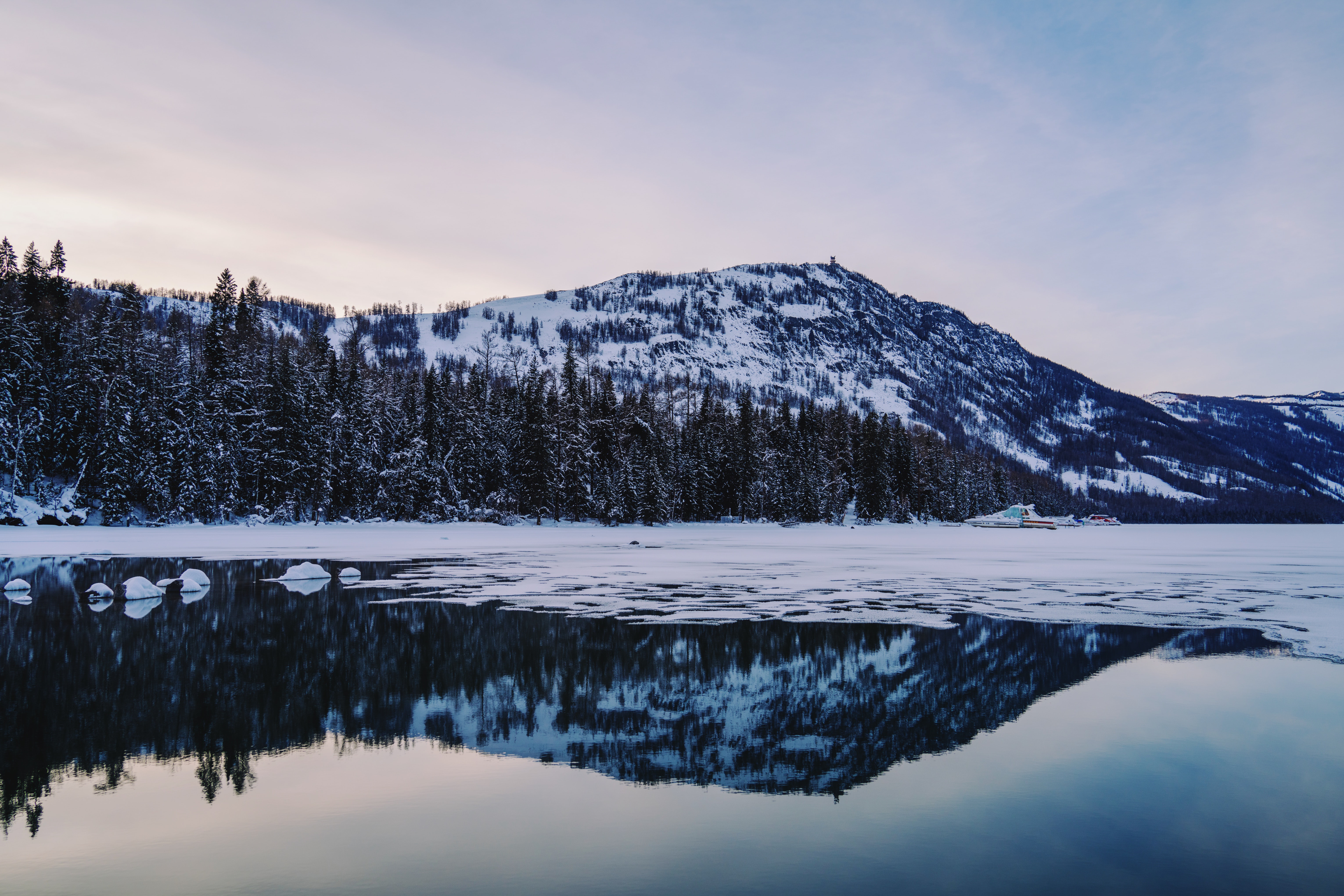 Обои: зимнее озеро, гора - 6124x4083