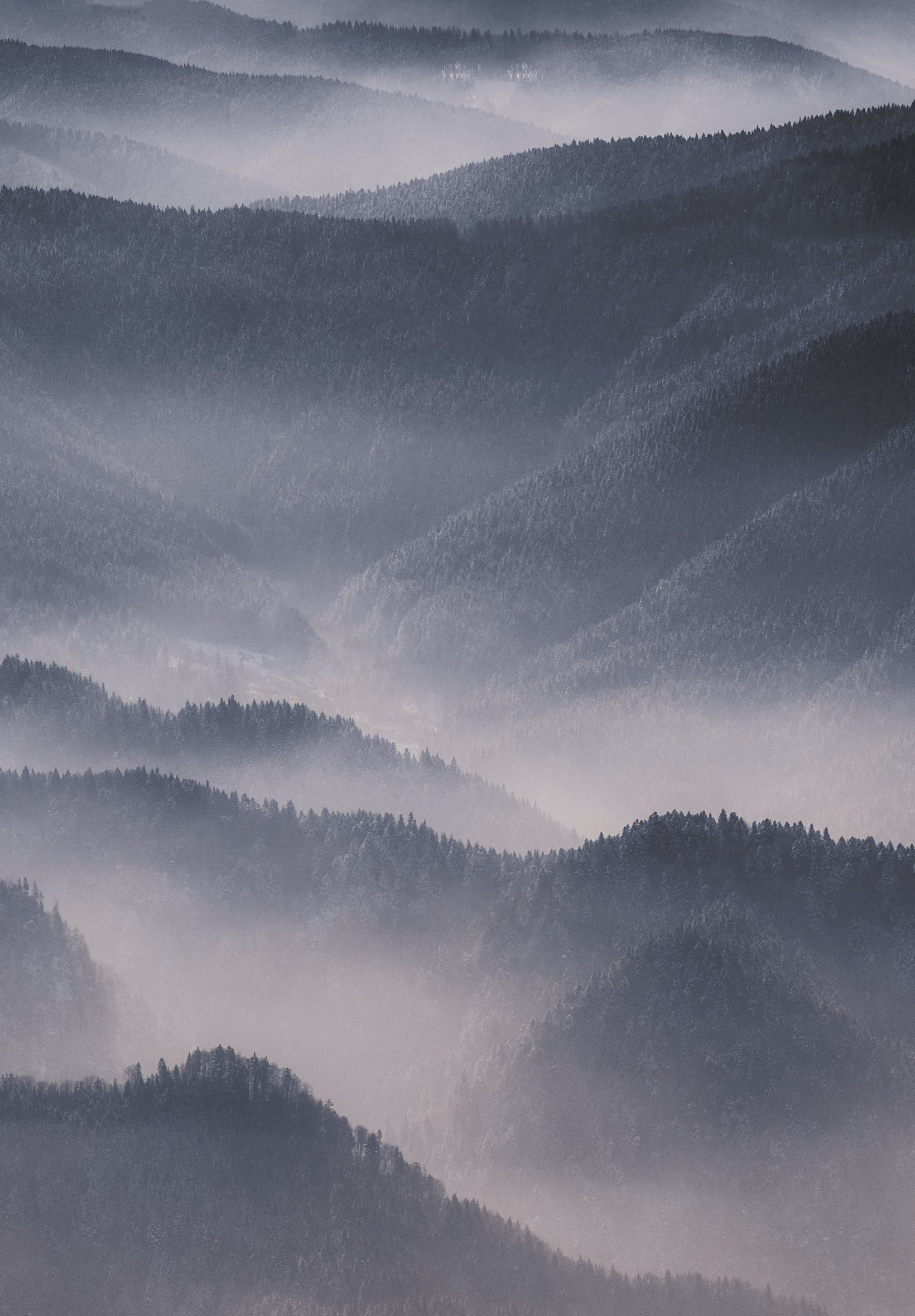 Обои: холмы в тумане - 1640x2360