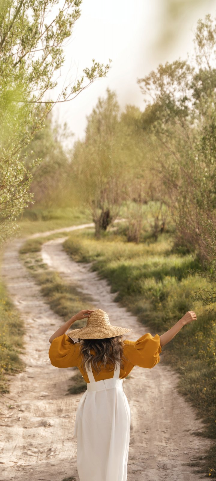 Обои: тропинка, девушка в шляпе - 720x1600