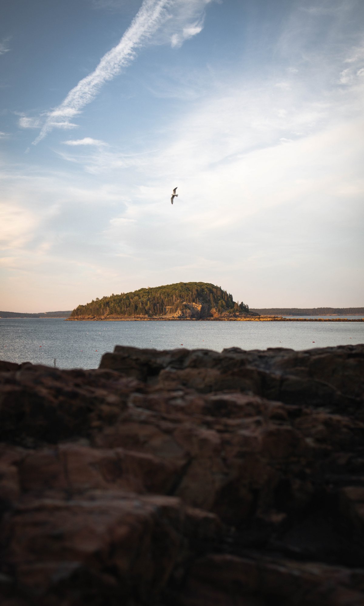 Обои: остров в озере, полет птицы - 1200x2000