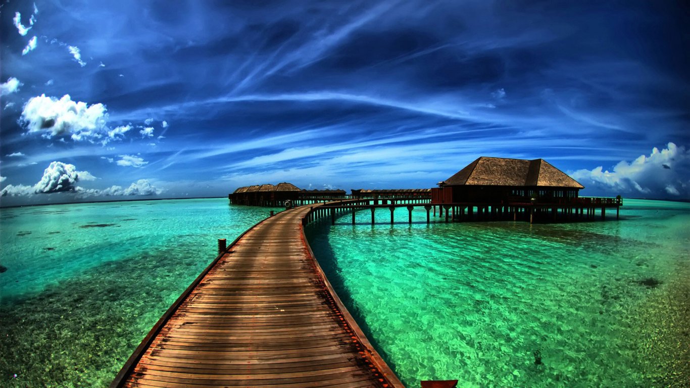 Обои: Мальдивы, пейзаж, океан - 1366x768