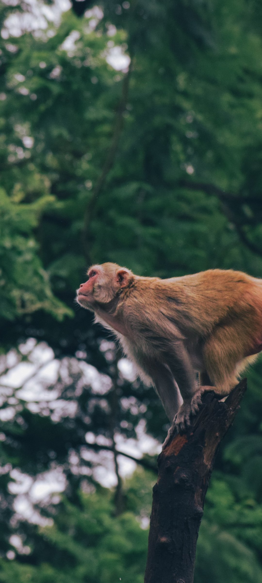 Обои: рыжая мартышка, прыжок на дереве - 1080x2400