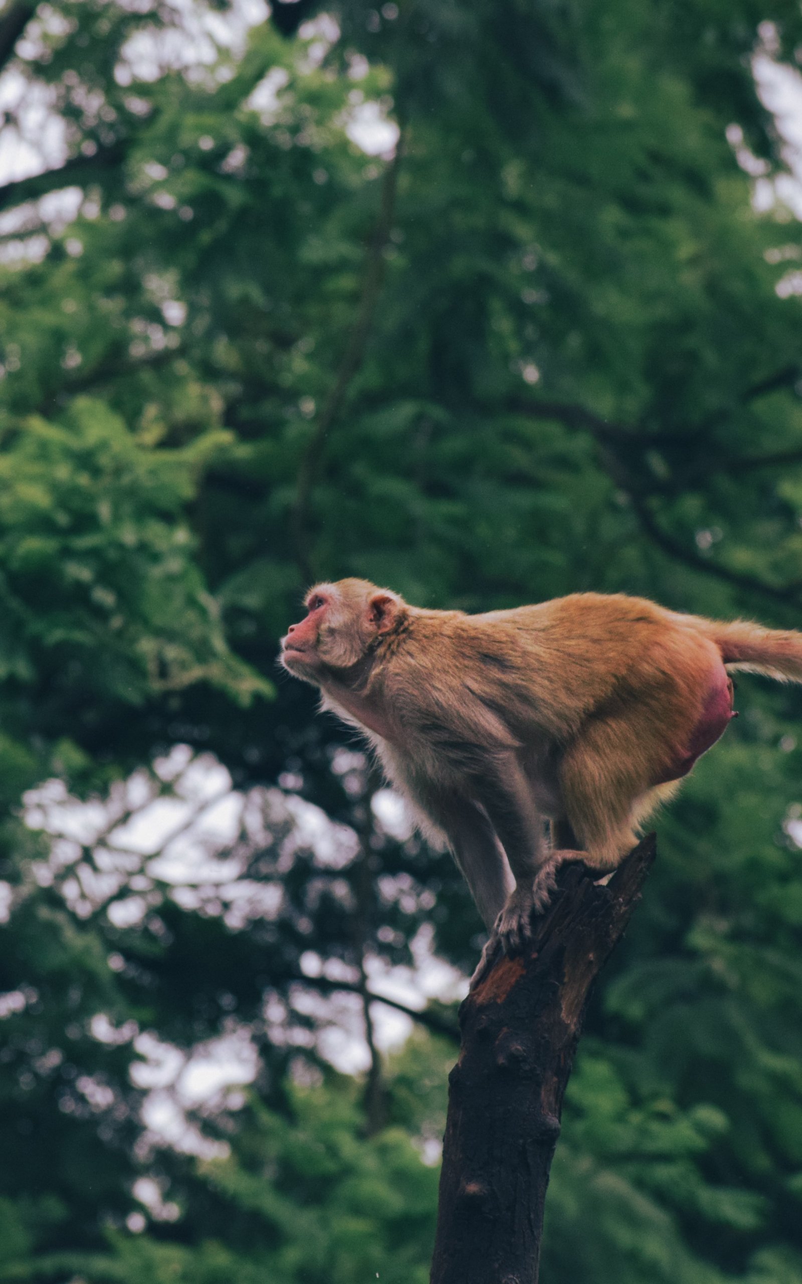 Обои: рыжая мартышка, прыжок на дереве - 1600x2560