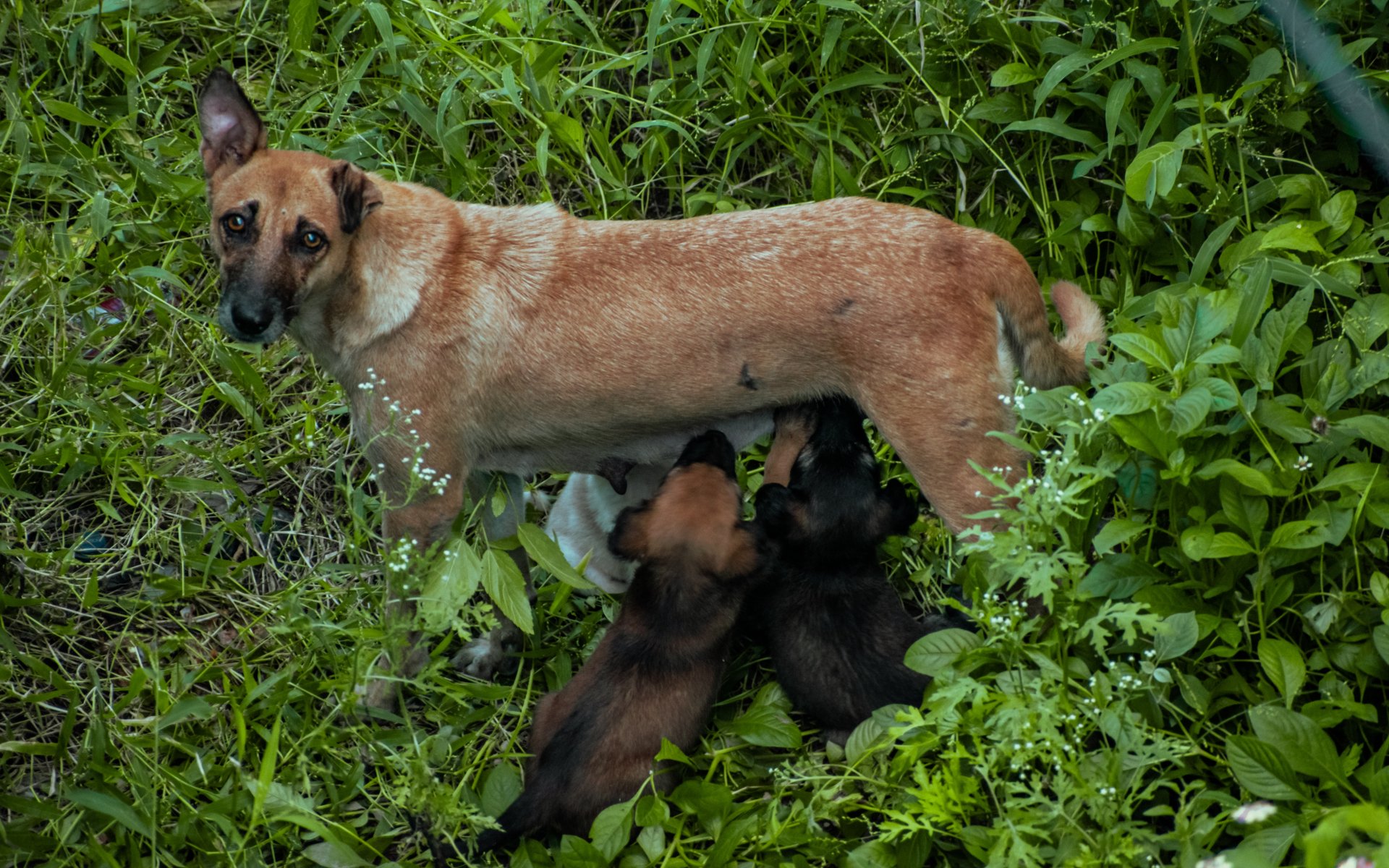 Обои: бездомная собака, щенки - 1920x1200
