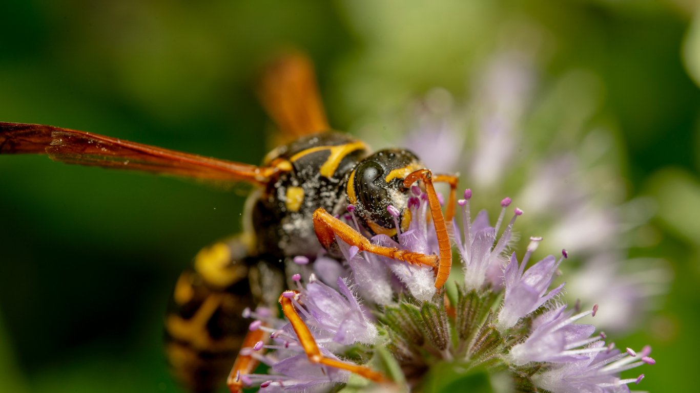 Обои: пчела на цветке - 1366x768