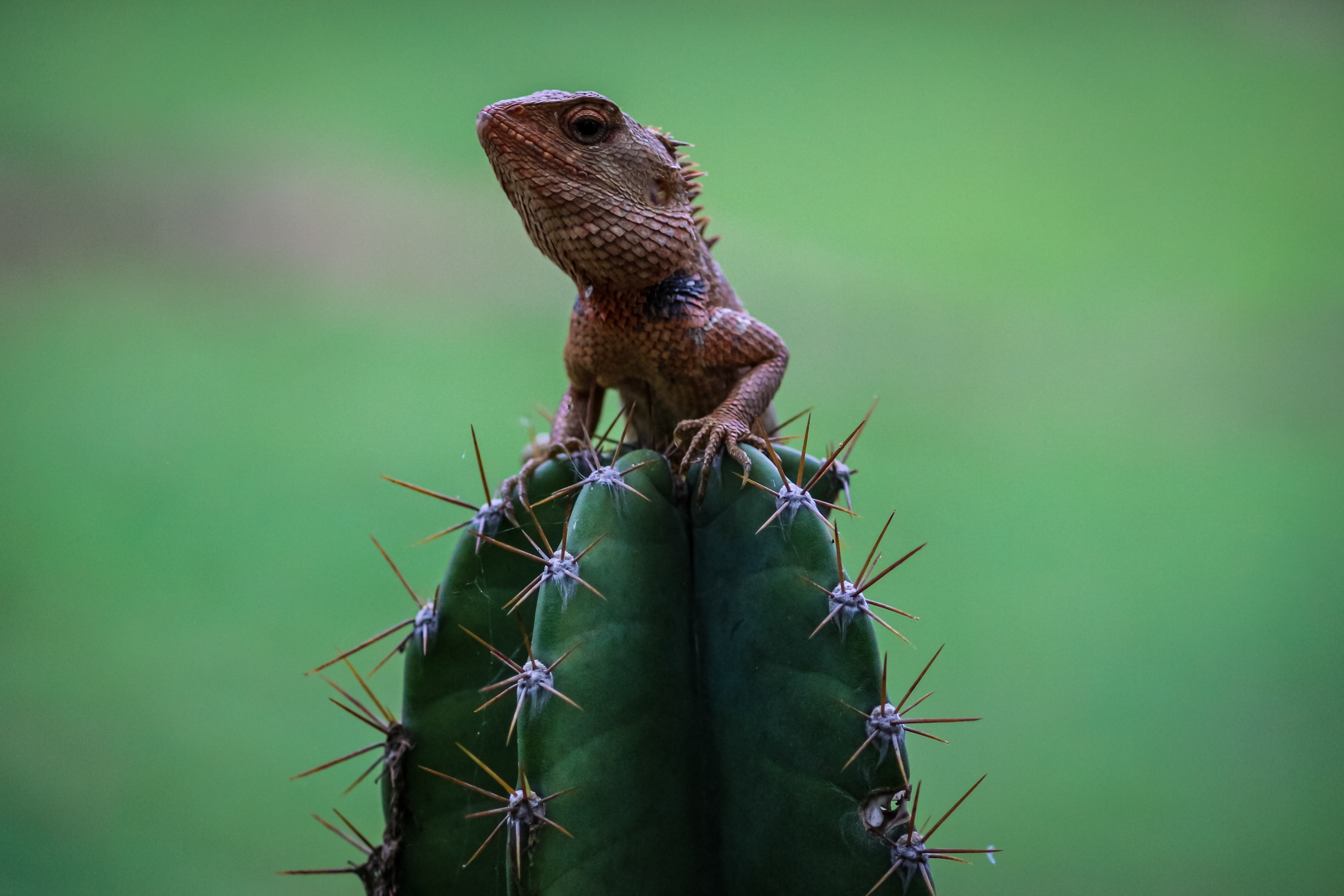 Обои: ящерица на кактусе - 4276x2851
