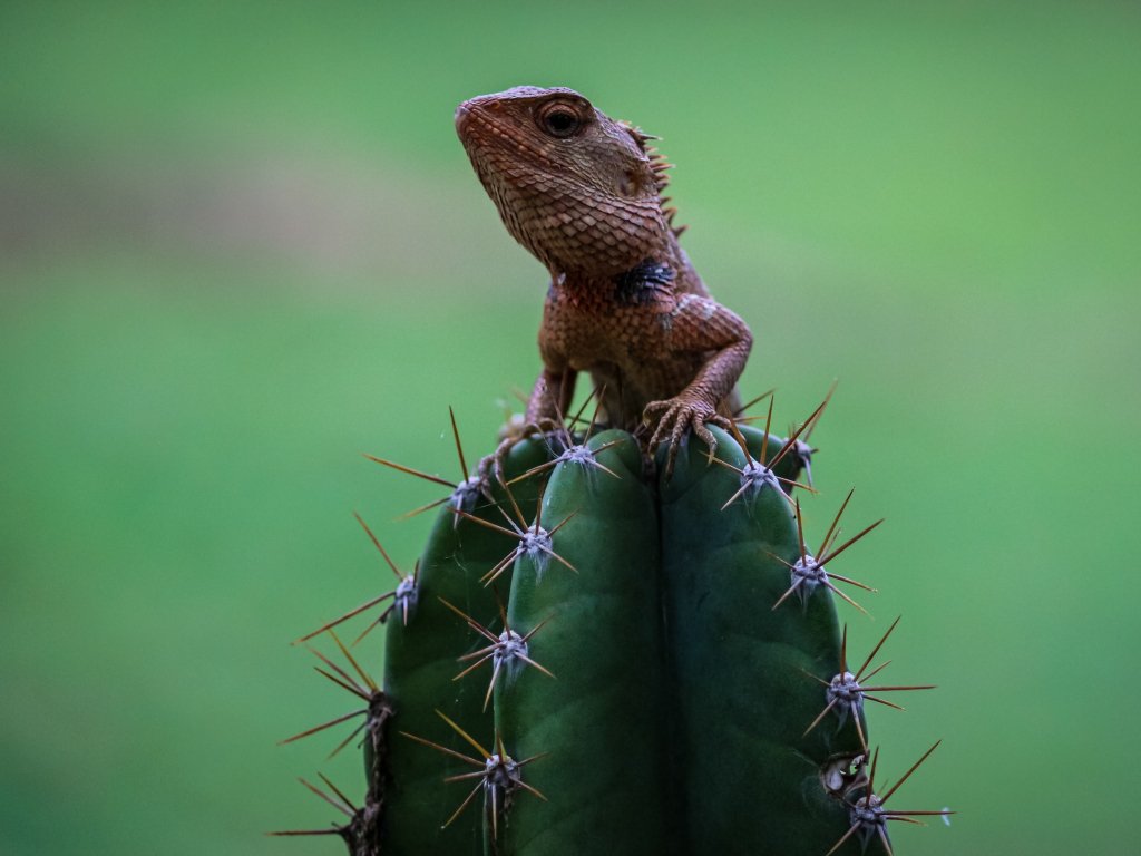 Обои: ящерица на кактусе - 1024x768