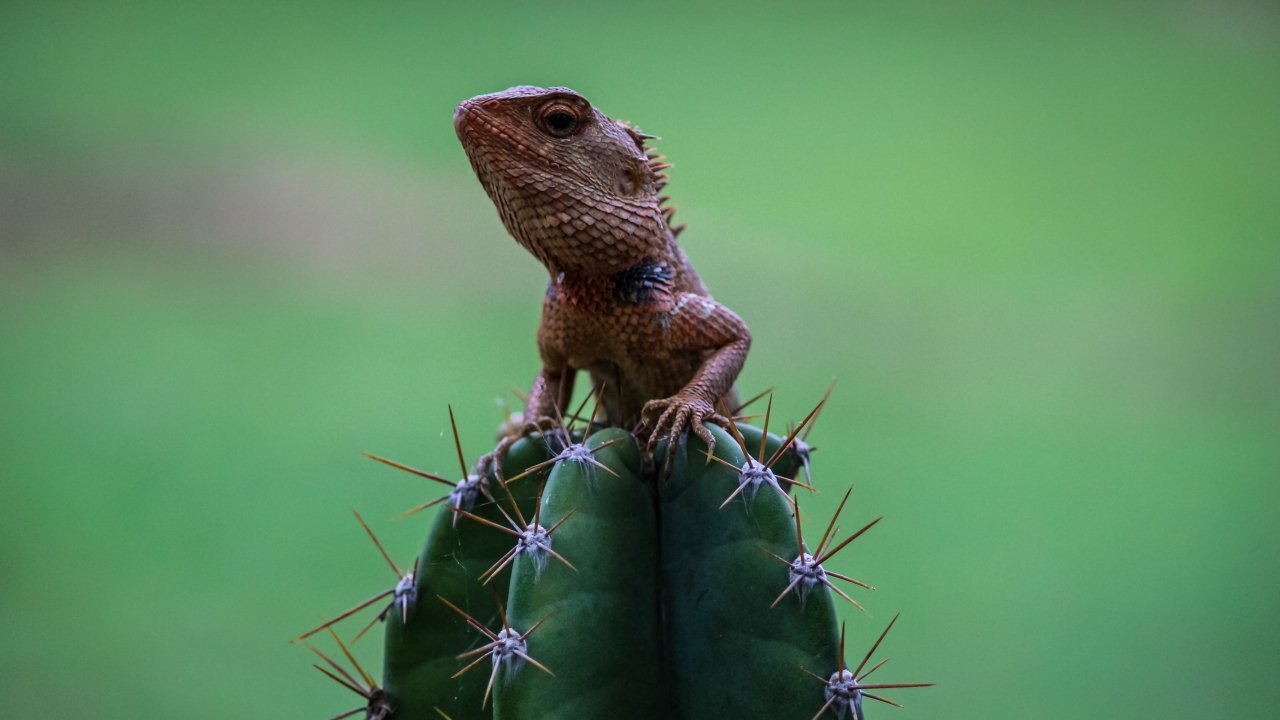 Обои: ящерица на кактусе - 1280x720