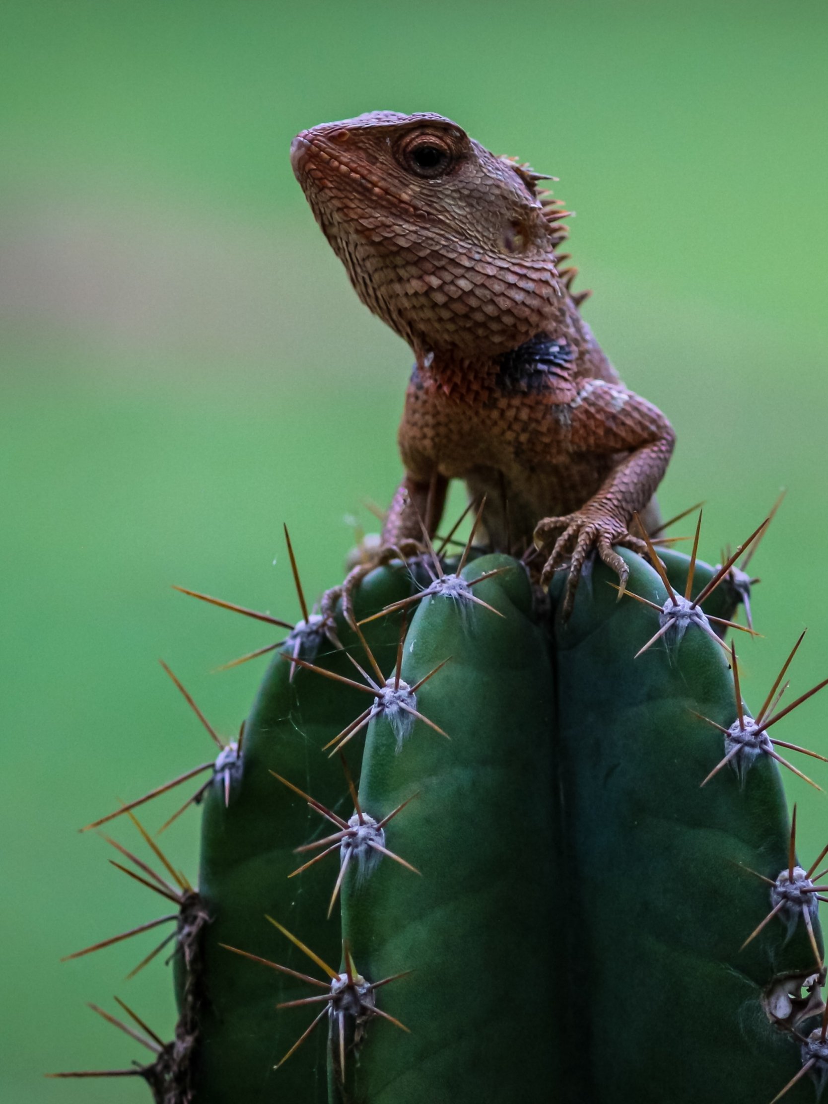 Обои: ящерица на кактусе - 1668x2224