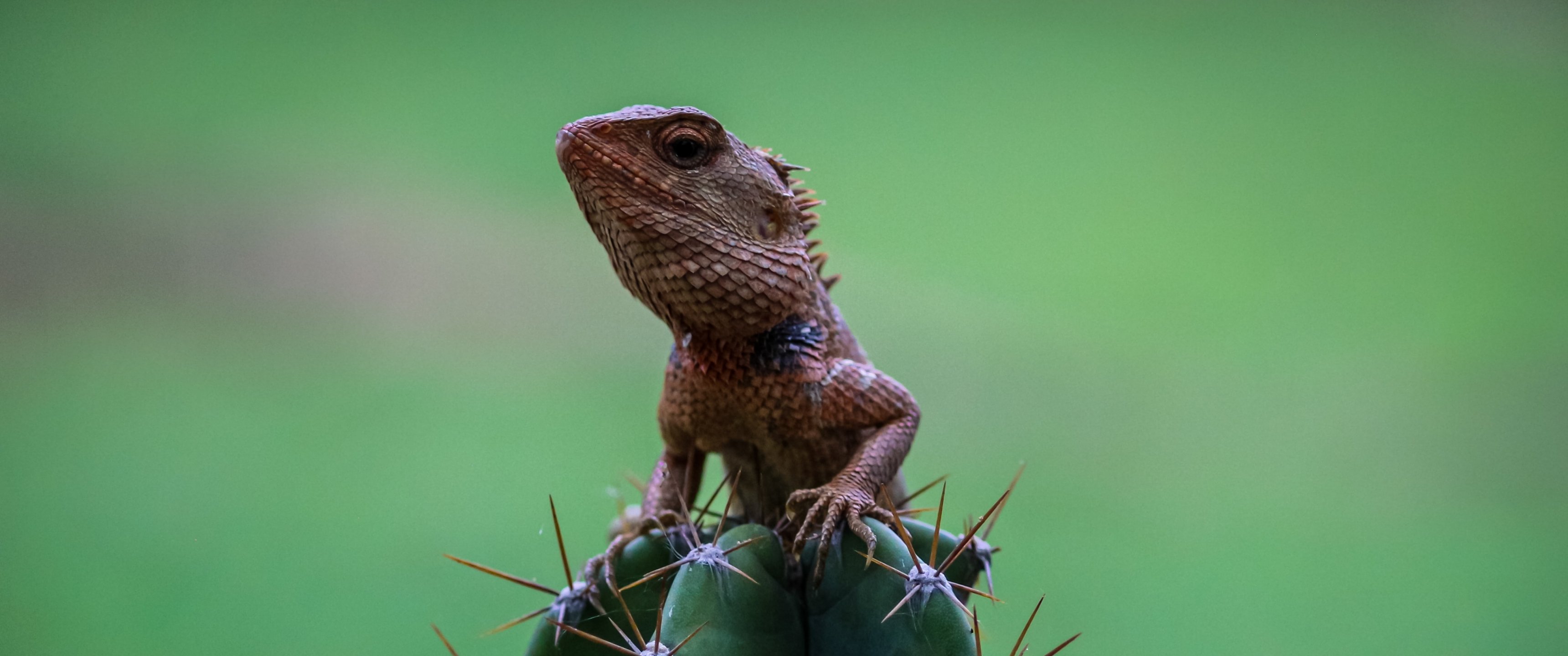 Обои: ящерица на кактусе - 3440x1440