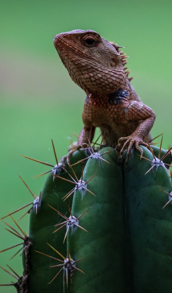 Обои: ящерица на кактусе - 600x1024