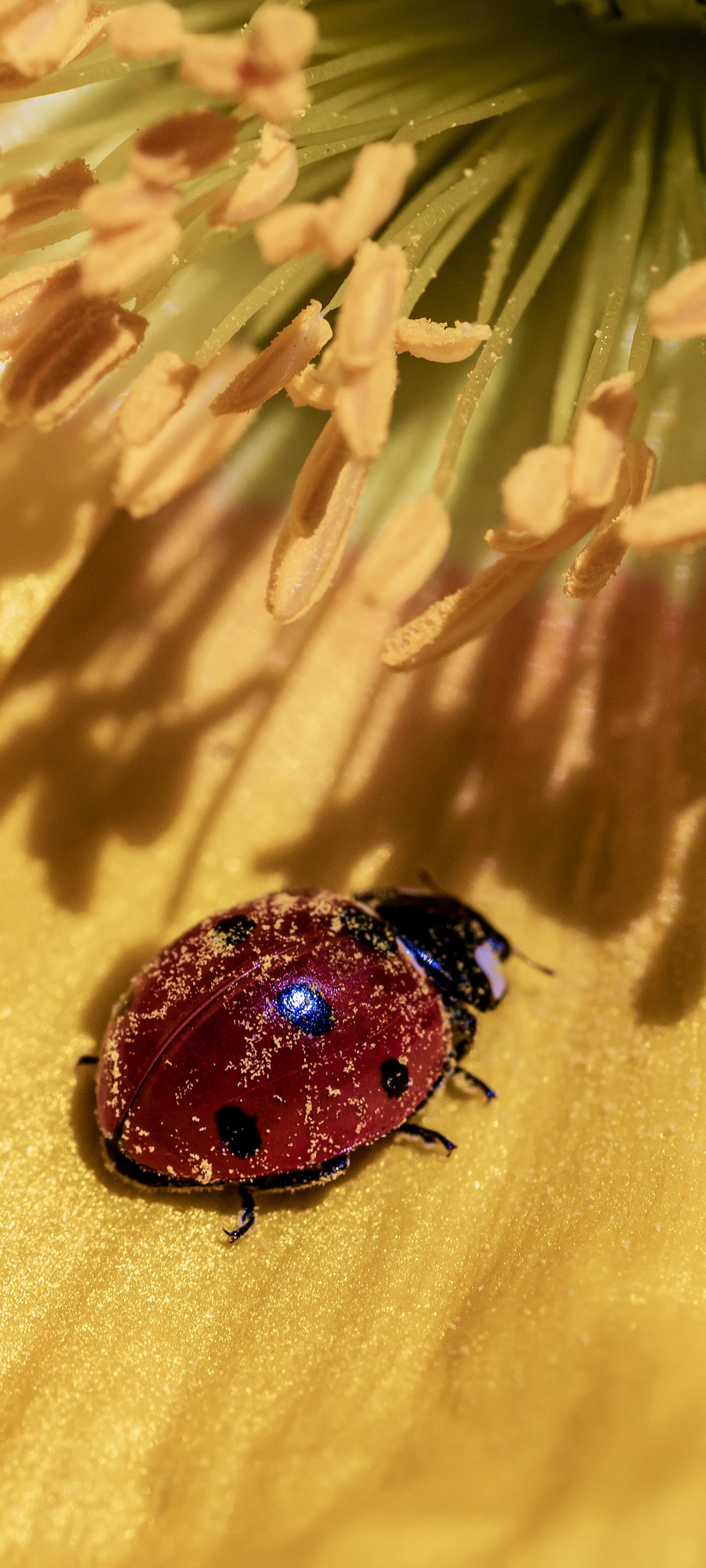 Обои: божья коровка на цветке - 1440x3200